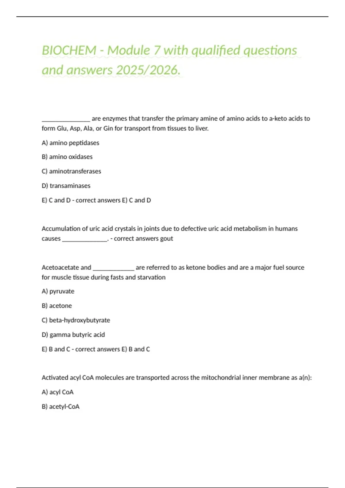 BIOCHEM - Module 7 with qualified questions and answers 2025/2026.