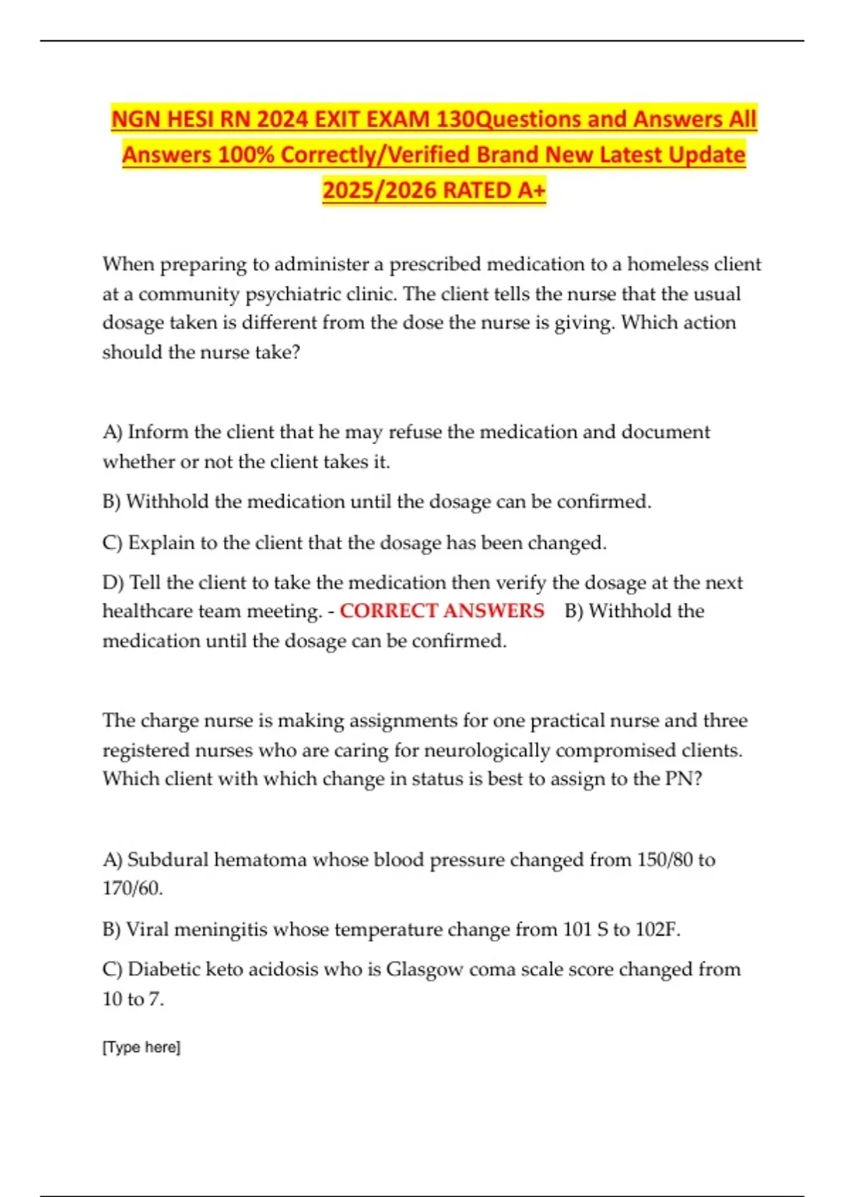Answers 100% Correctly/Verified Brand New Latest Update