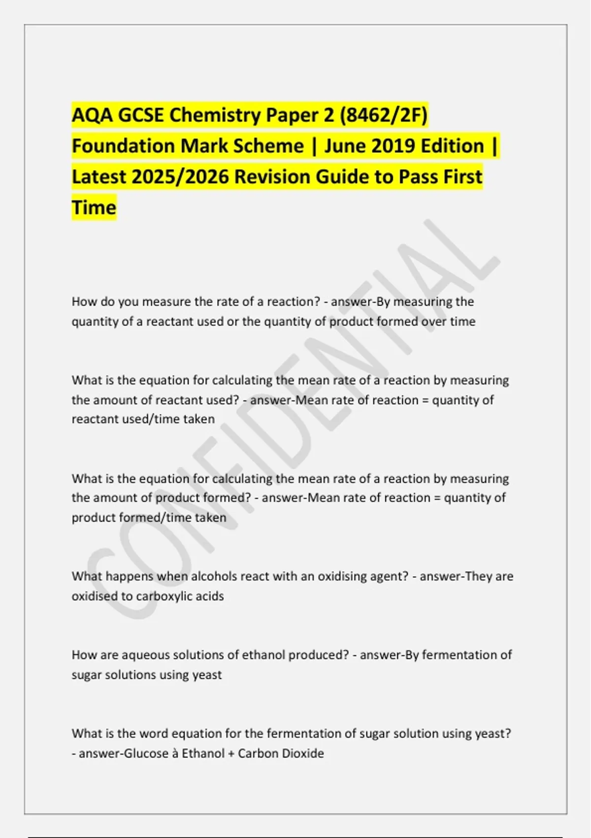 AQA GCSE Chemistry Paper 2 (8462/2F) Foundation Mark Scheme | June 2019 Edition | Latest 2025/2026 Revision Guide to Pass First Time
