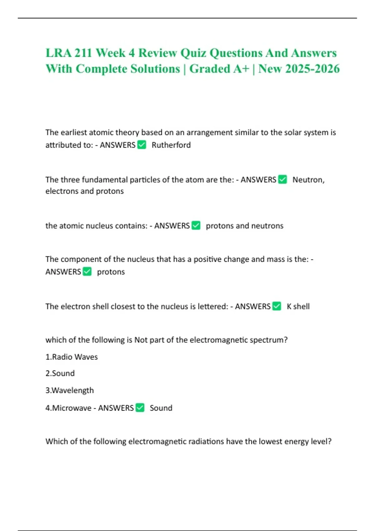 LRA 211 Week 4 Review Quiz Questions And Answers