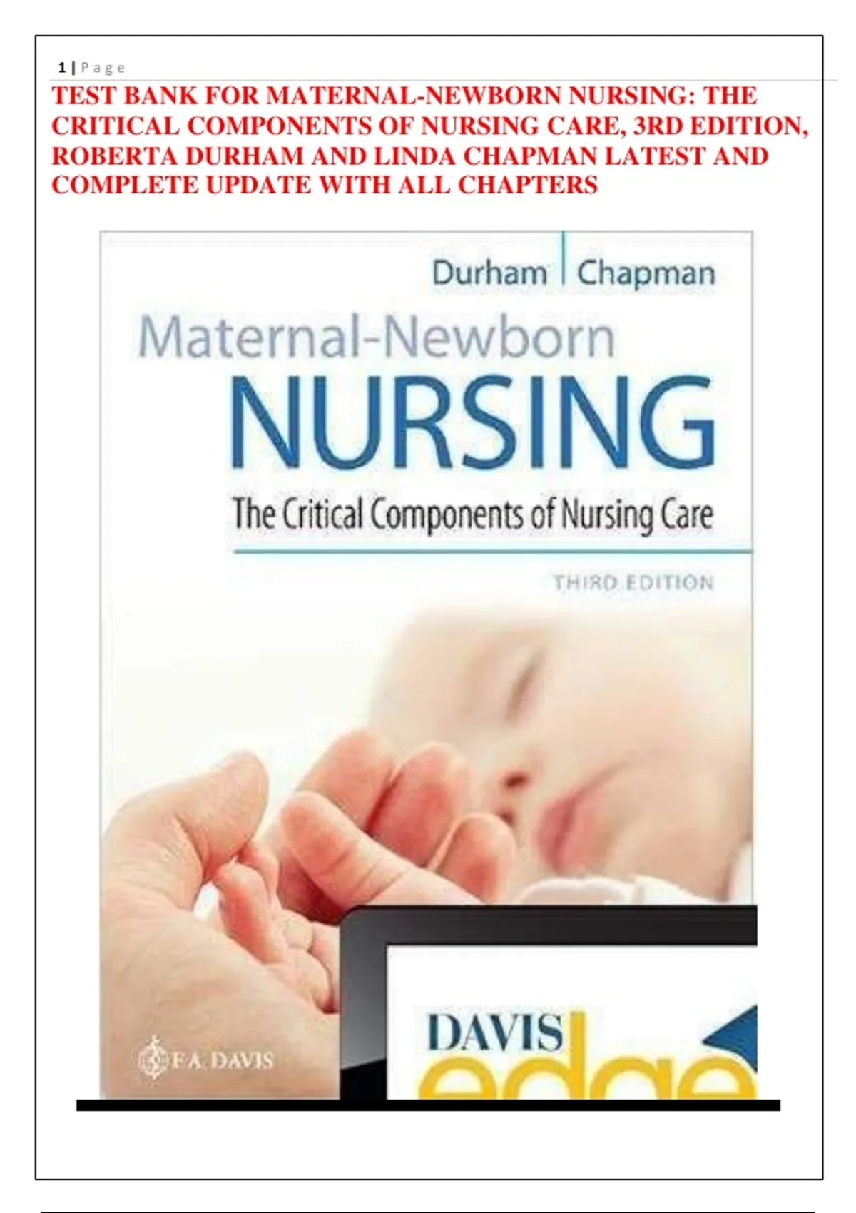 TEST BANK FOR MATERNAL-NEWBORN NURSING: THE