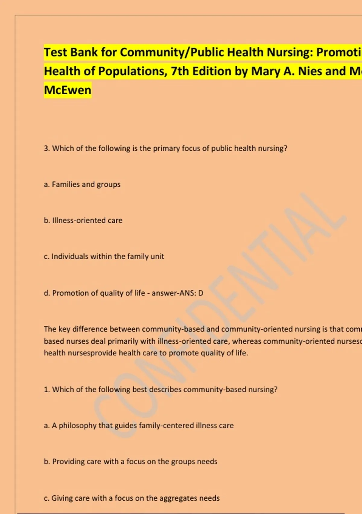2. Which of the following best describes community-oriented nursing?