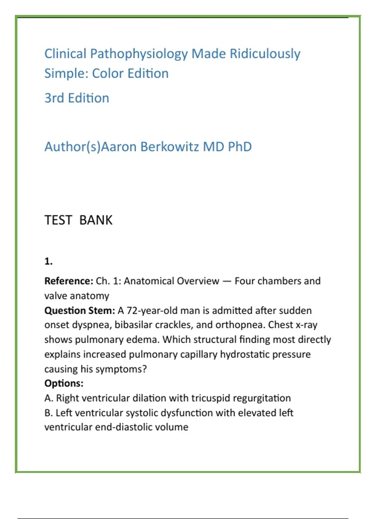 • Correct (B): Elevated left ventricular end-diastolic volume