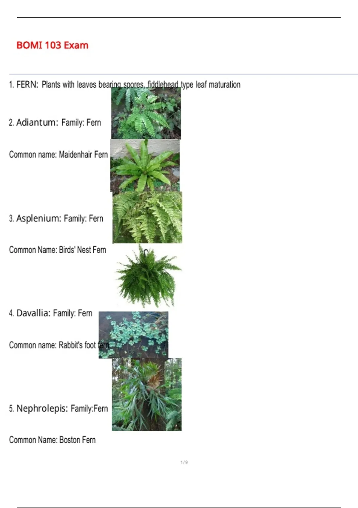 1. FERN: Plants with leaves bearing spores, fiddlehead type leaf maturation