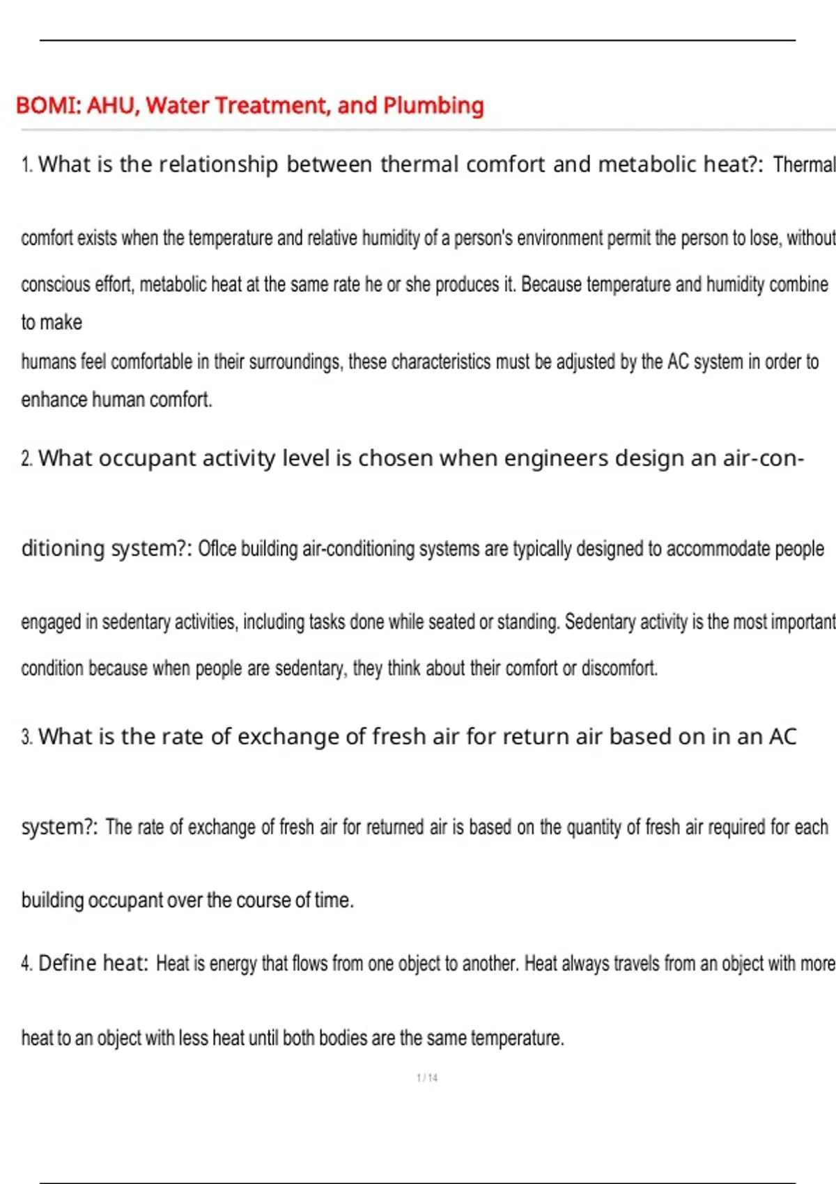 1. What is the relationship between thermal comfort and metabolic heat?: Thermal