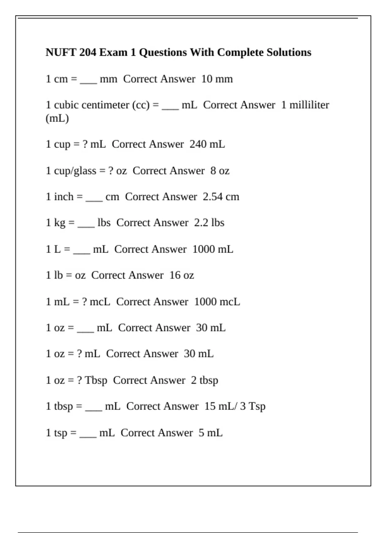 NUFT 204 Exam 1 Questions With Complete Solutions