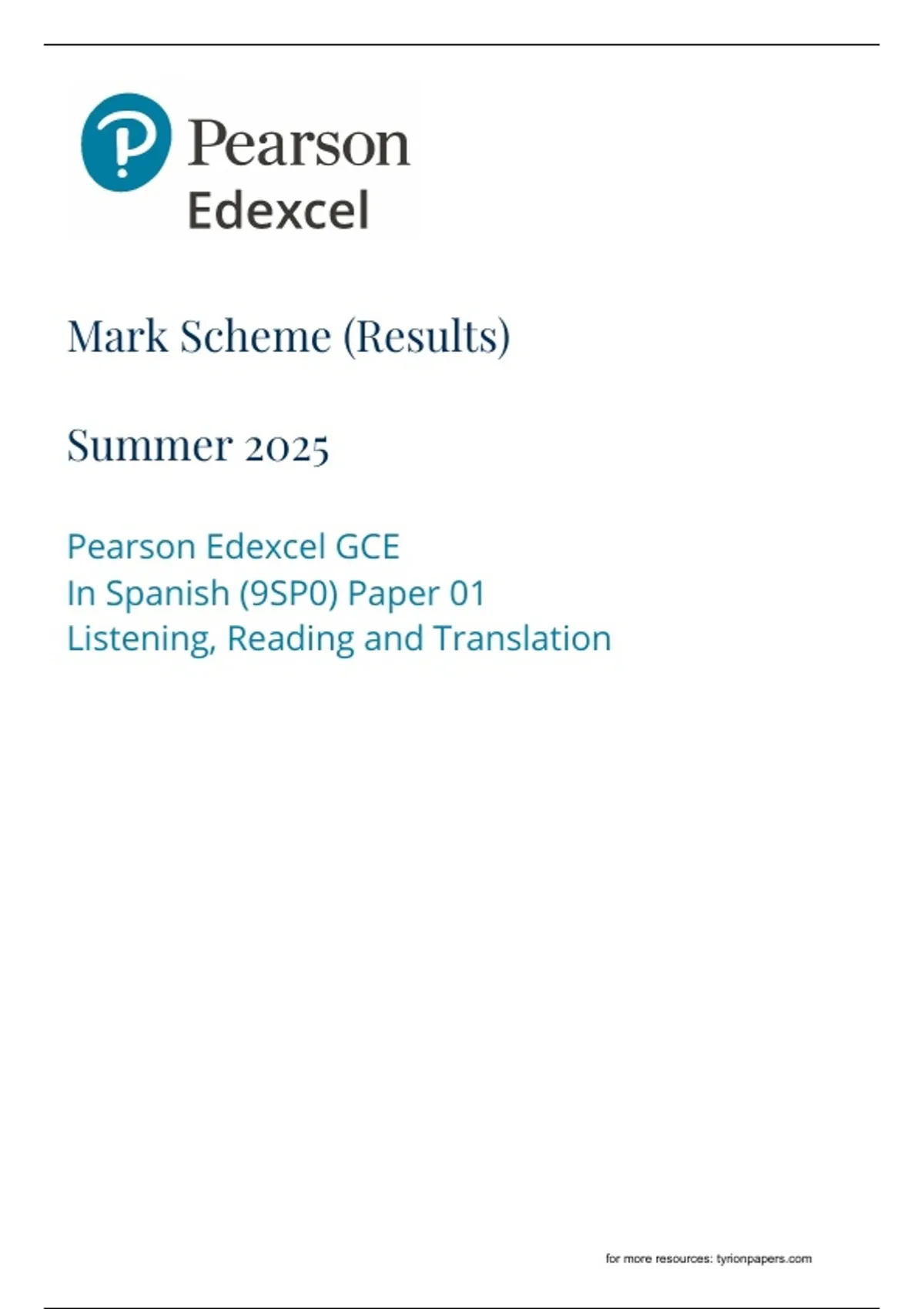 2025 Edexcel A Level Spanish (GCE) Paper 1 Listening Reading Translation - Mark Scheme