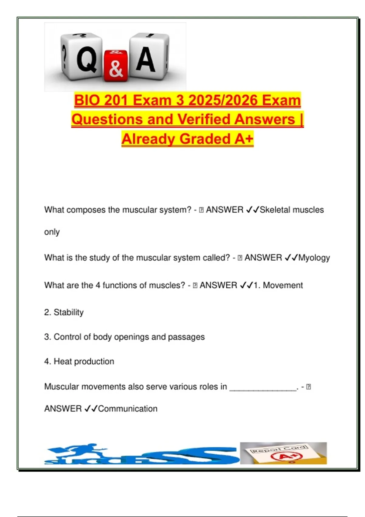 What are the 4 functions of muscles? - 🧠 ANSWER ✔✔1. Movement