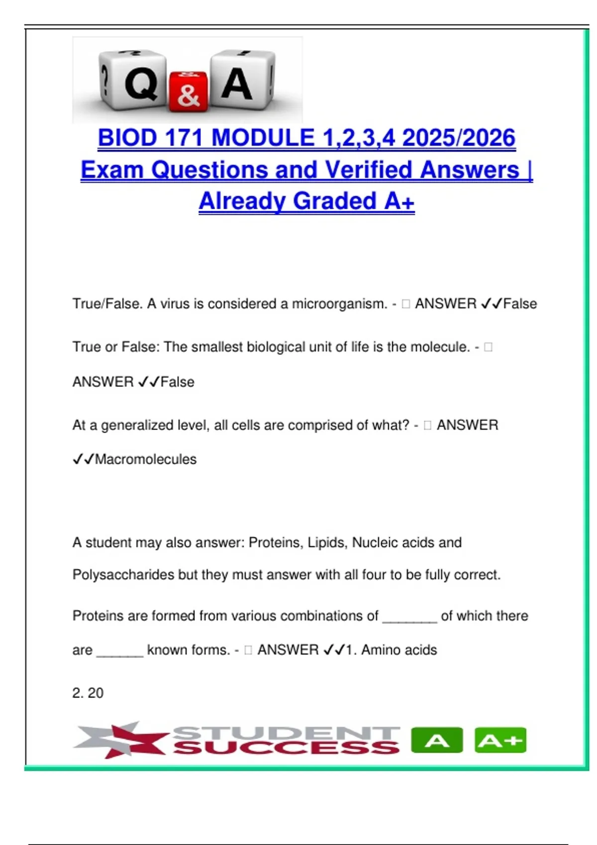 Exam Questions and Verified Answers |