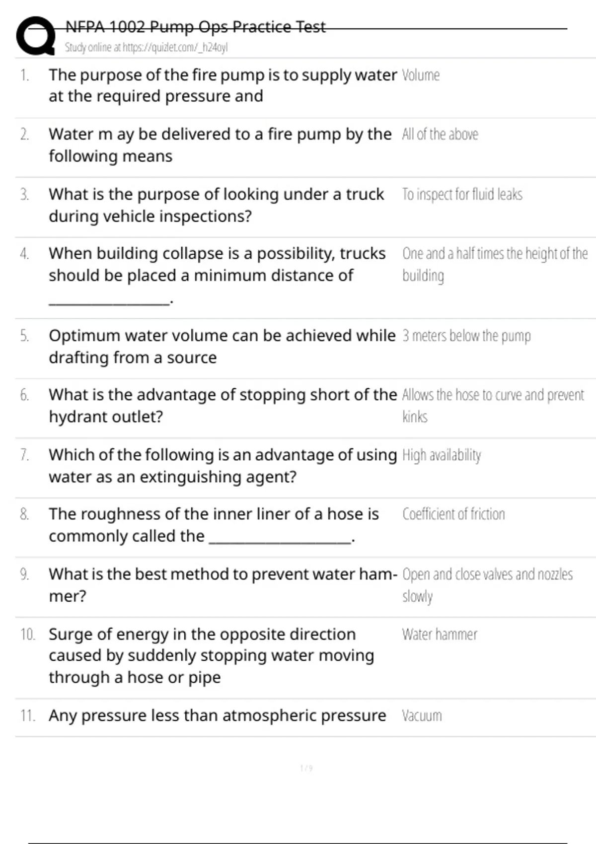 NFPA 1002 Pump Ops Practice Test