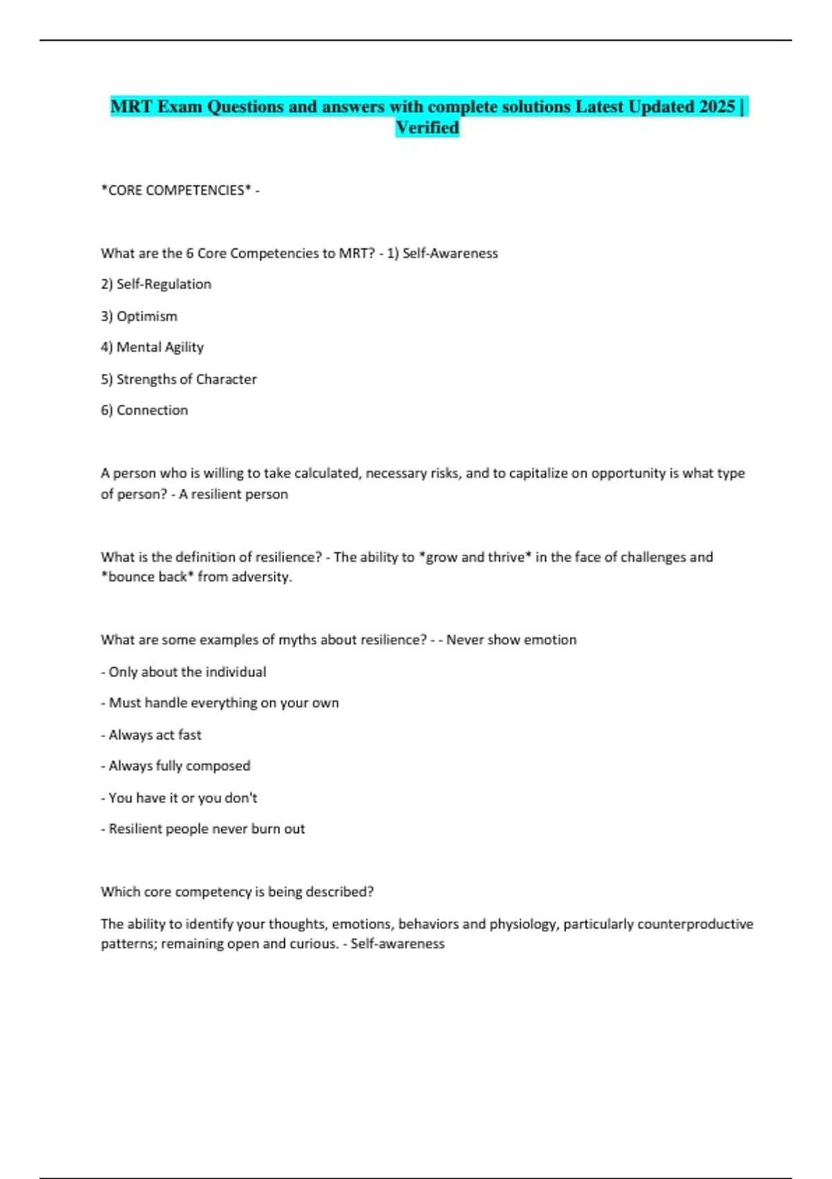 What are the 6 Core Competencies to MRT? - 1) Self-Awareness