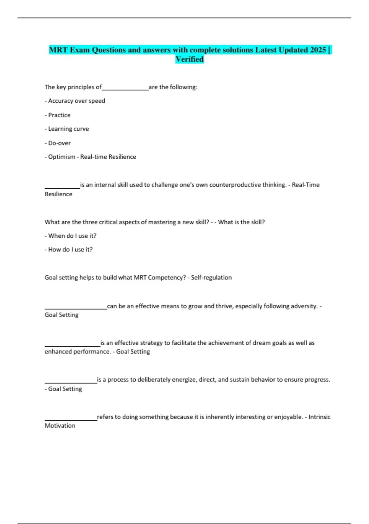 MRT Exam Questions and answers with complete solutions Latest Updated 2025 |