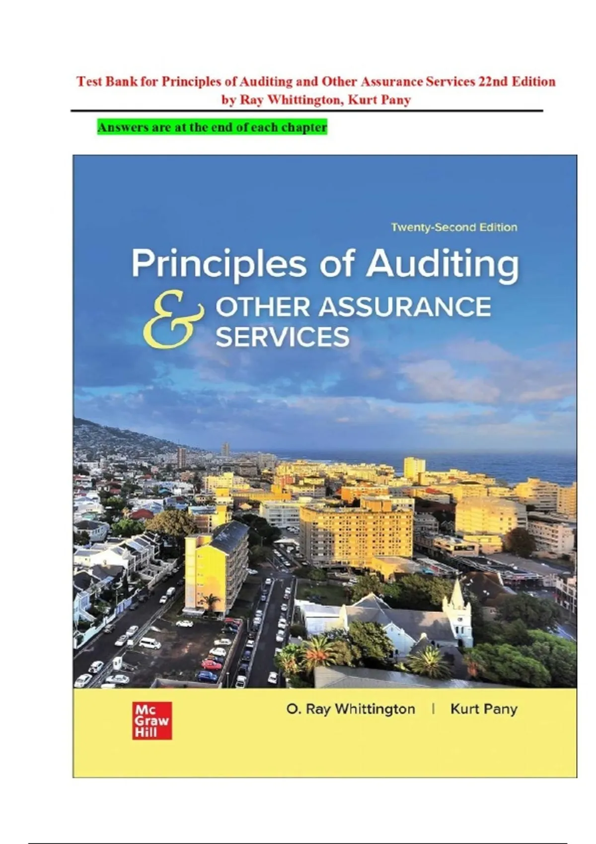 Principles of Auditing and Other Assurance Services – 22nd Edition (Ray Whittington & Kurt Pany) | Complete Test Bank with Answers