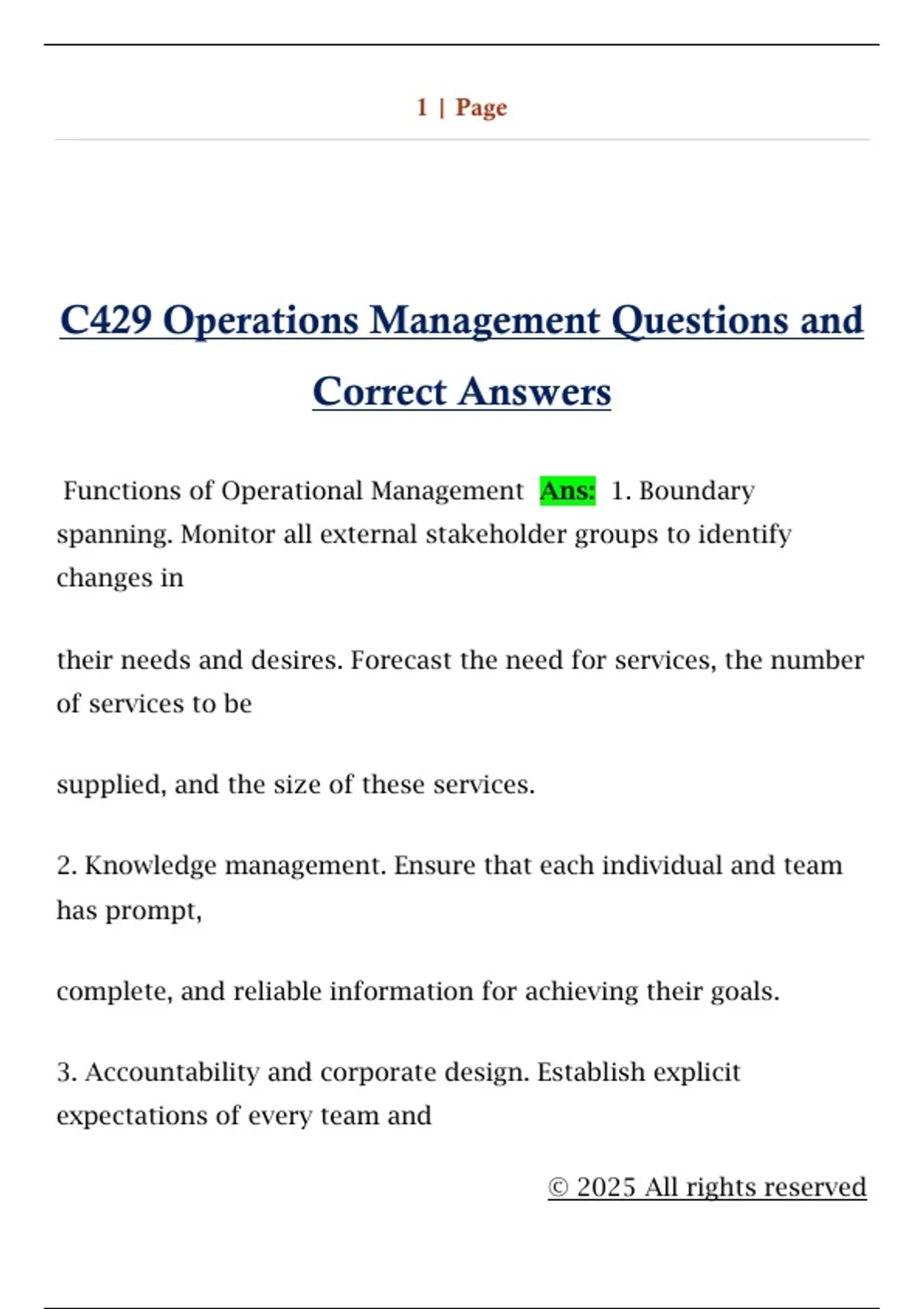 C429 Operations Management Questions and Correct AnswersC429 Operations Management Questions and Correct Answers