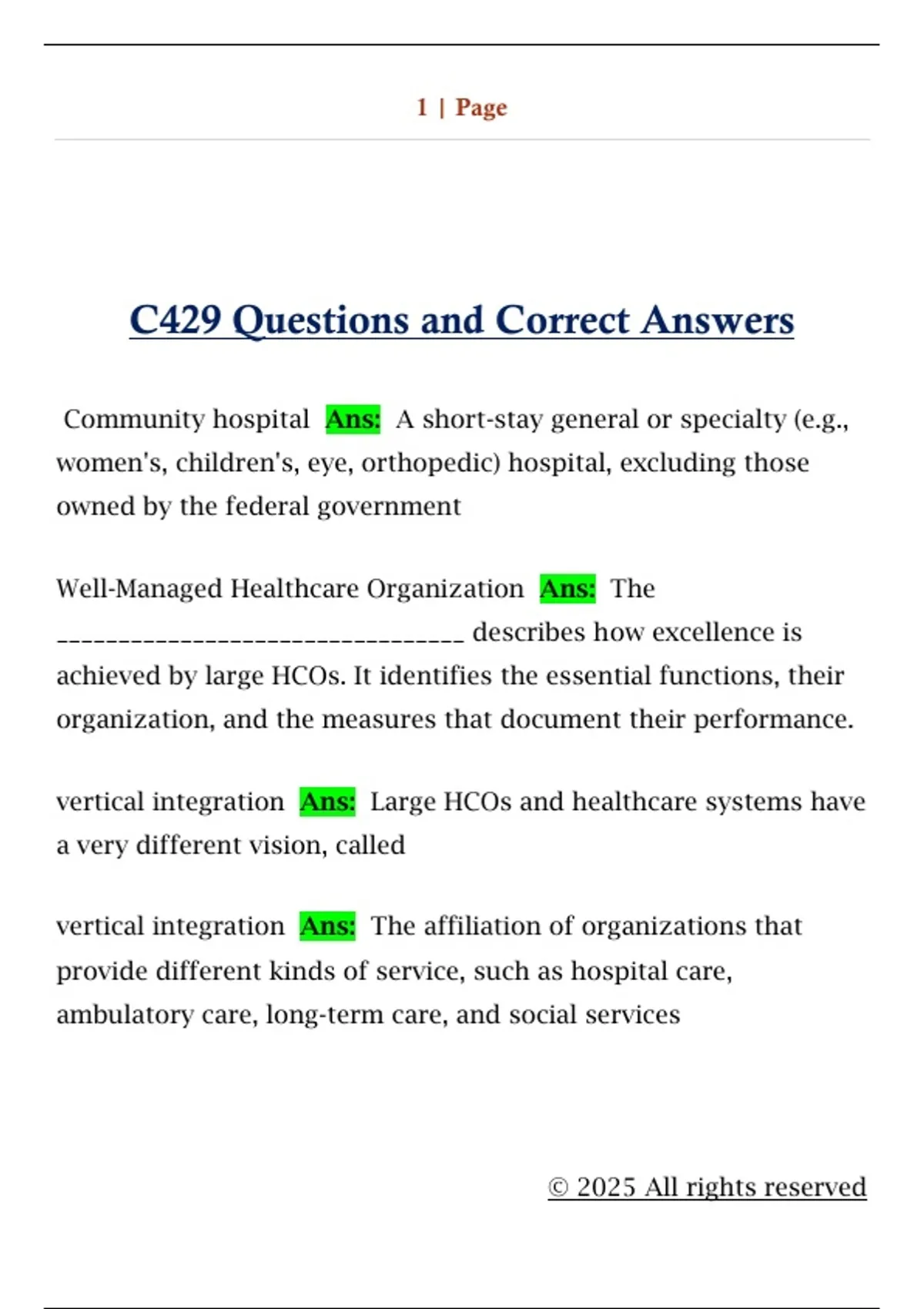 C429 Questions and Correct Answers