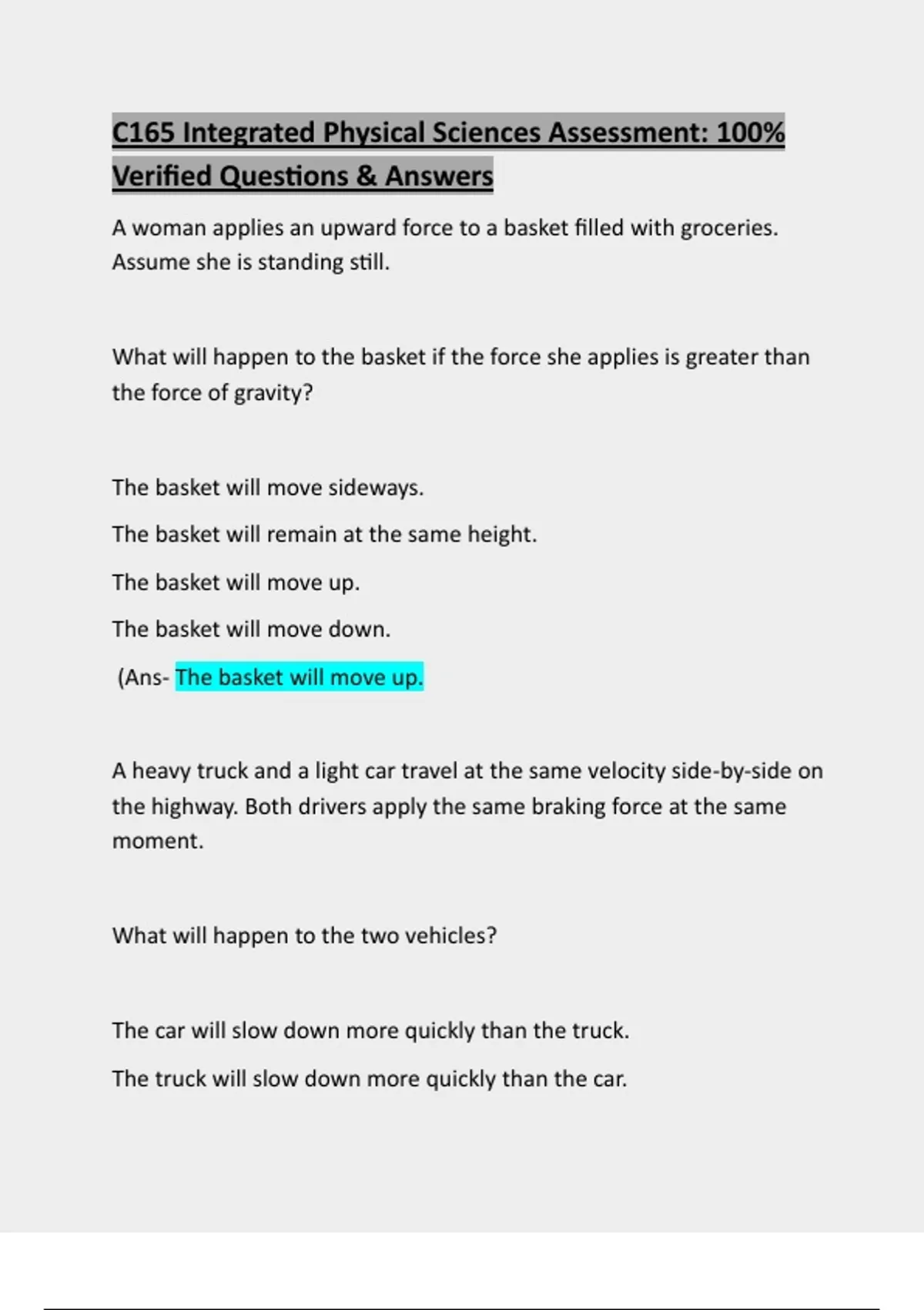 C165 Integrated Physical Sciences Assessment: 100% Verified Questions & Answers: Latest Updated
