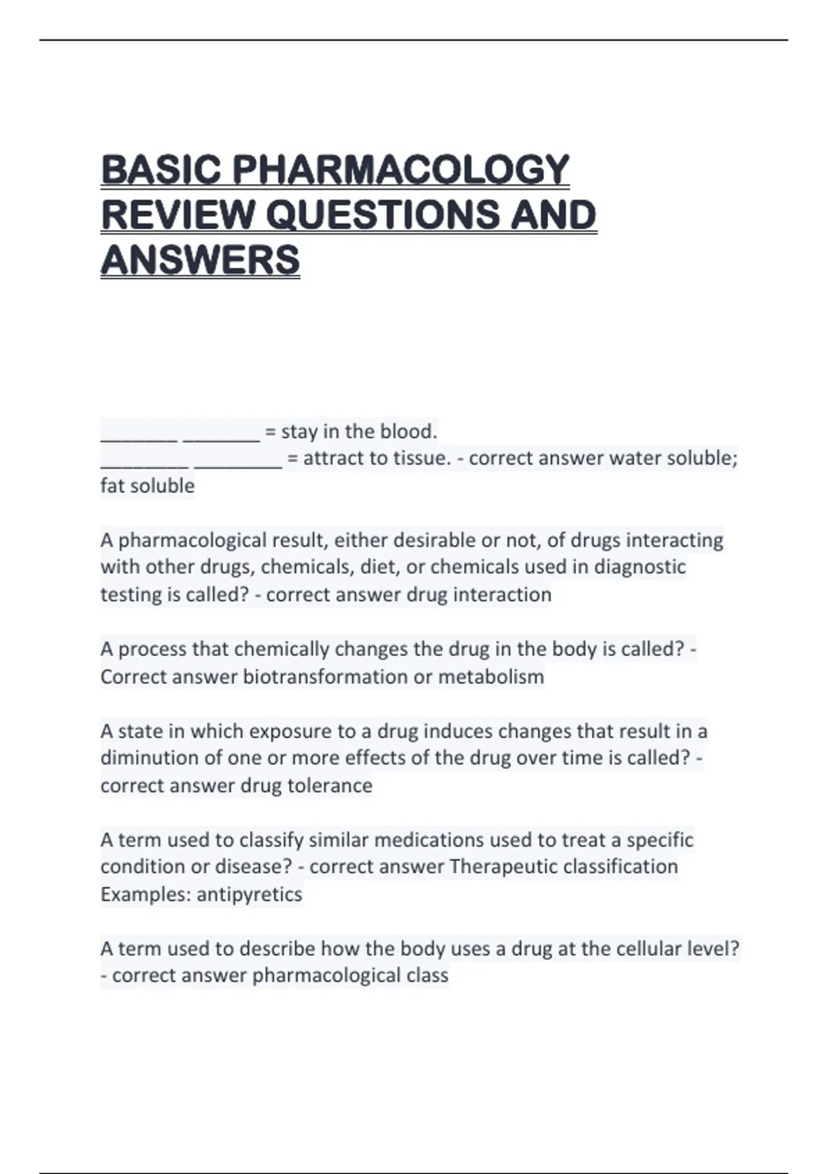Basic Principles of Clinical Pharmacology Correct answers 2025/2026 BASIC PHARMACOLOGY REVIEW EXAM