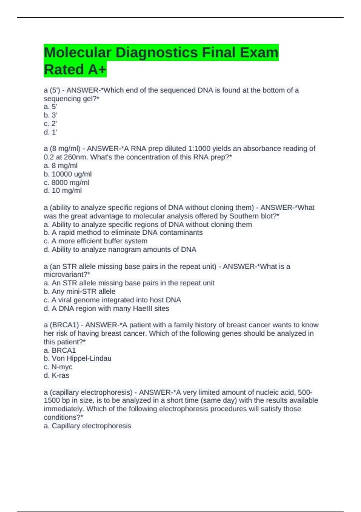 Molecular Diagnostics Final Exam