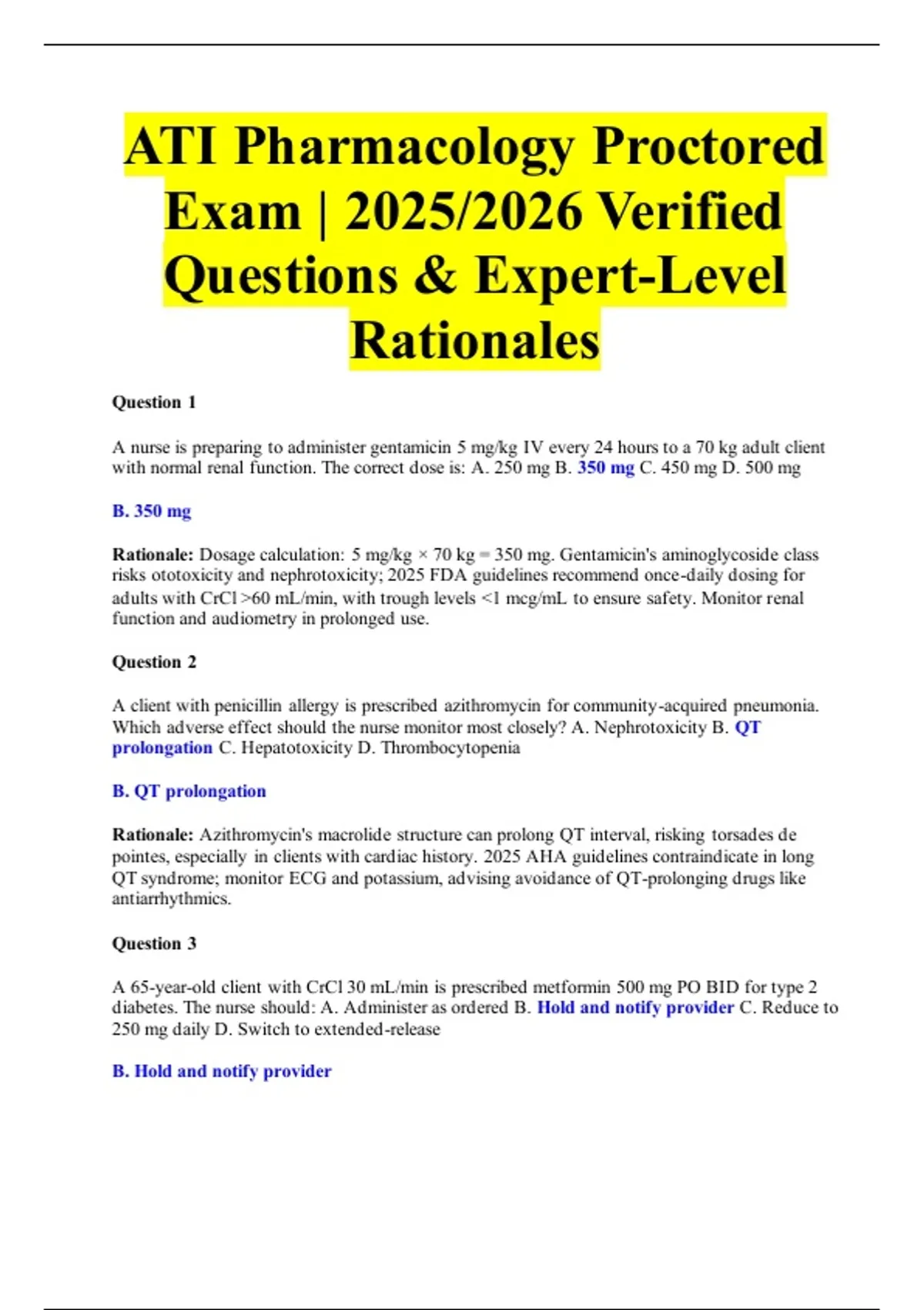 Rationale: Dosage calculation: 5 mg/kg × 70 kg = 350 mg. Gentamicin's aminoglycoside class
