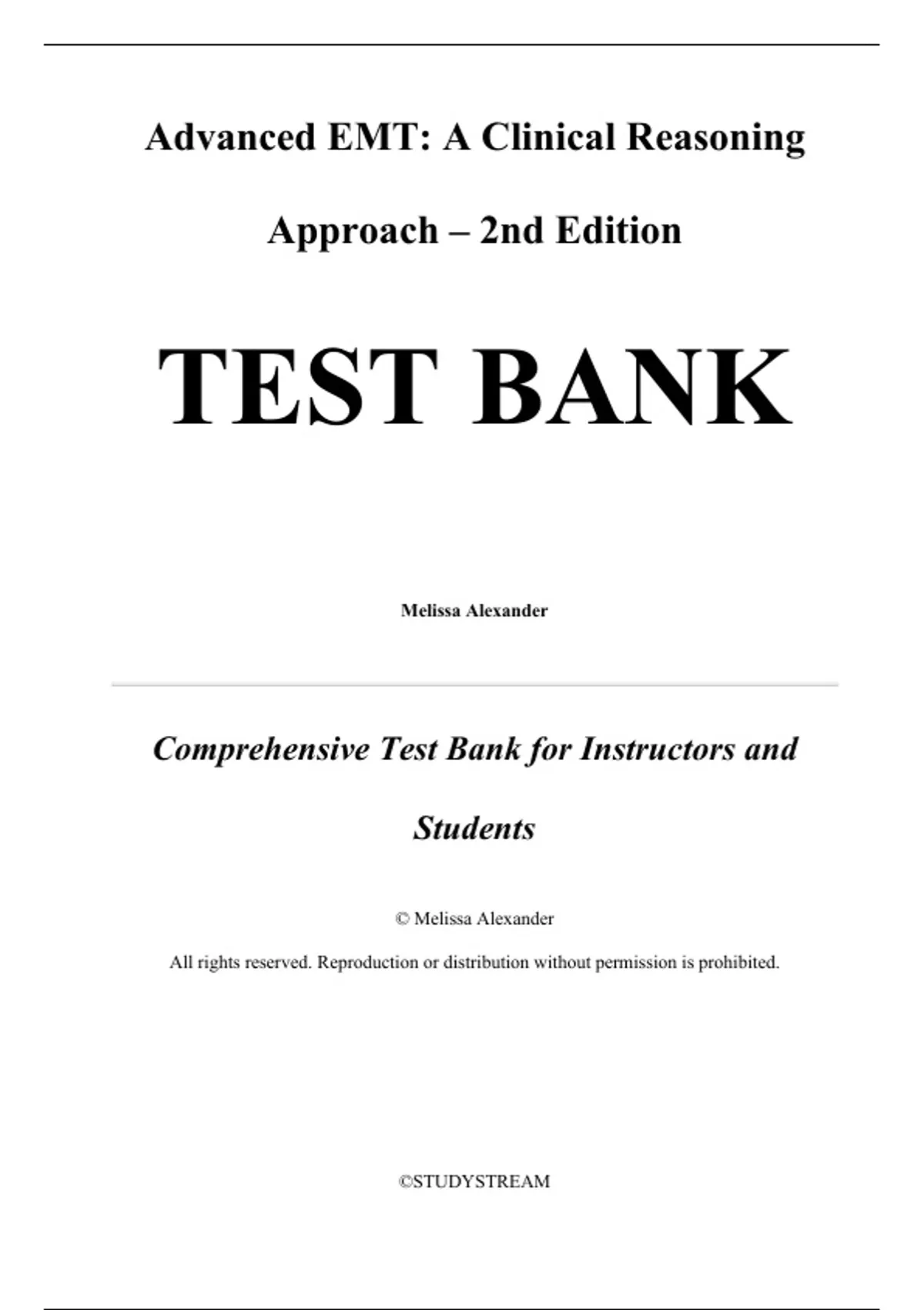 Advanced EMT A Clinical Reasoning Approach 2nd Edition by Melissa Alexander Test Bank, Questions and Answers - All Chapters