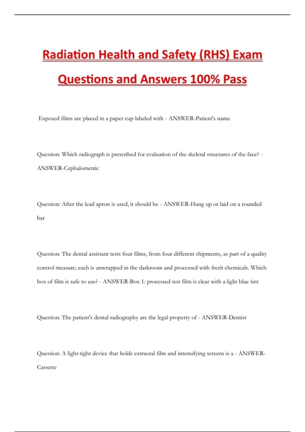 Radiation Health and Safety (RHS) Exam Questions and Answers 100% Pass