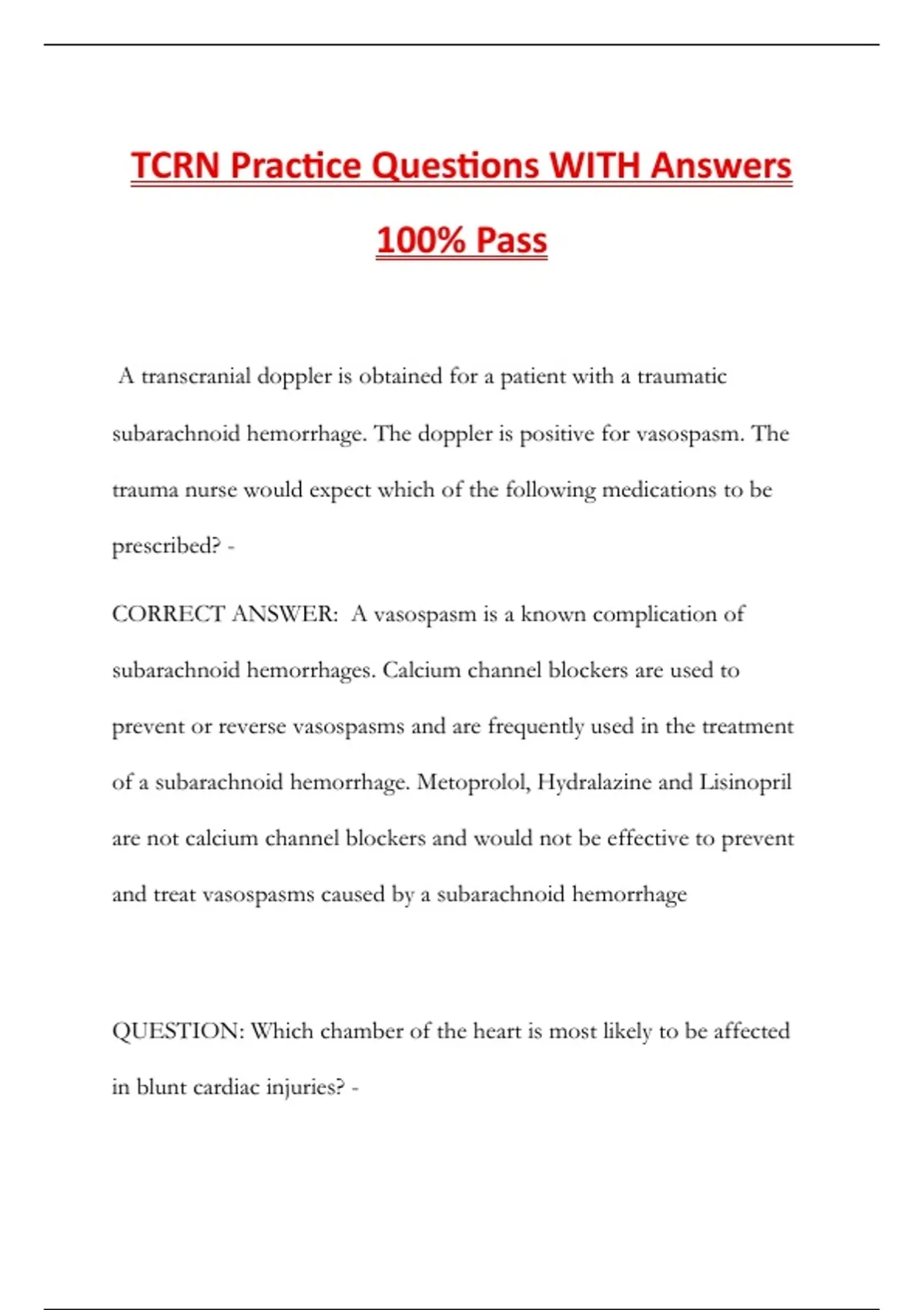TCRN Practice Questions WITH Answers 100% Pass