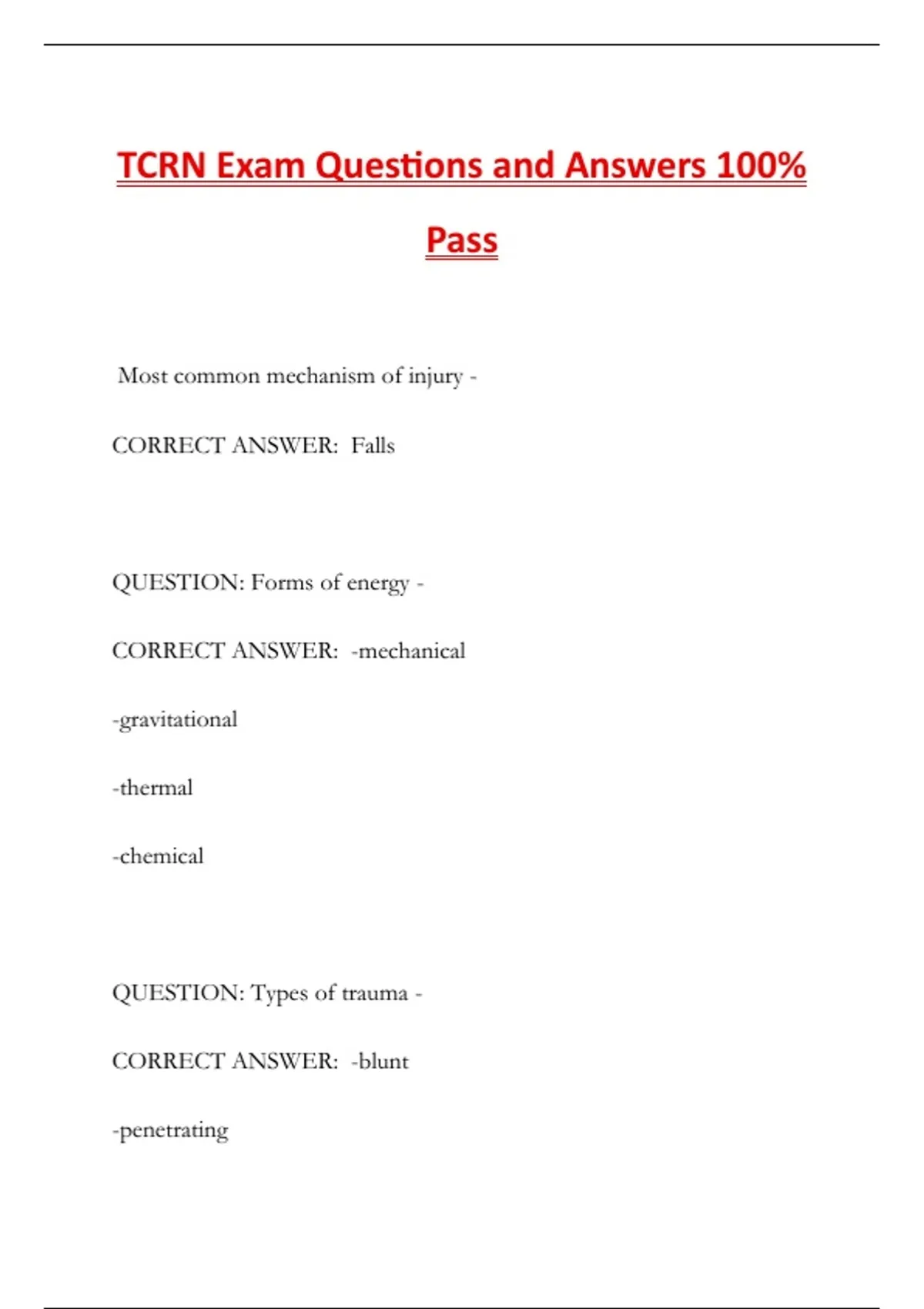 TCRN Exam Questions and Answers 100%