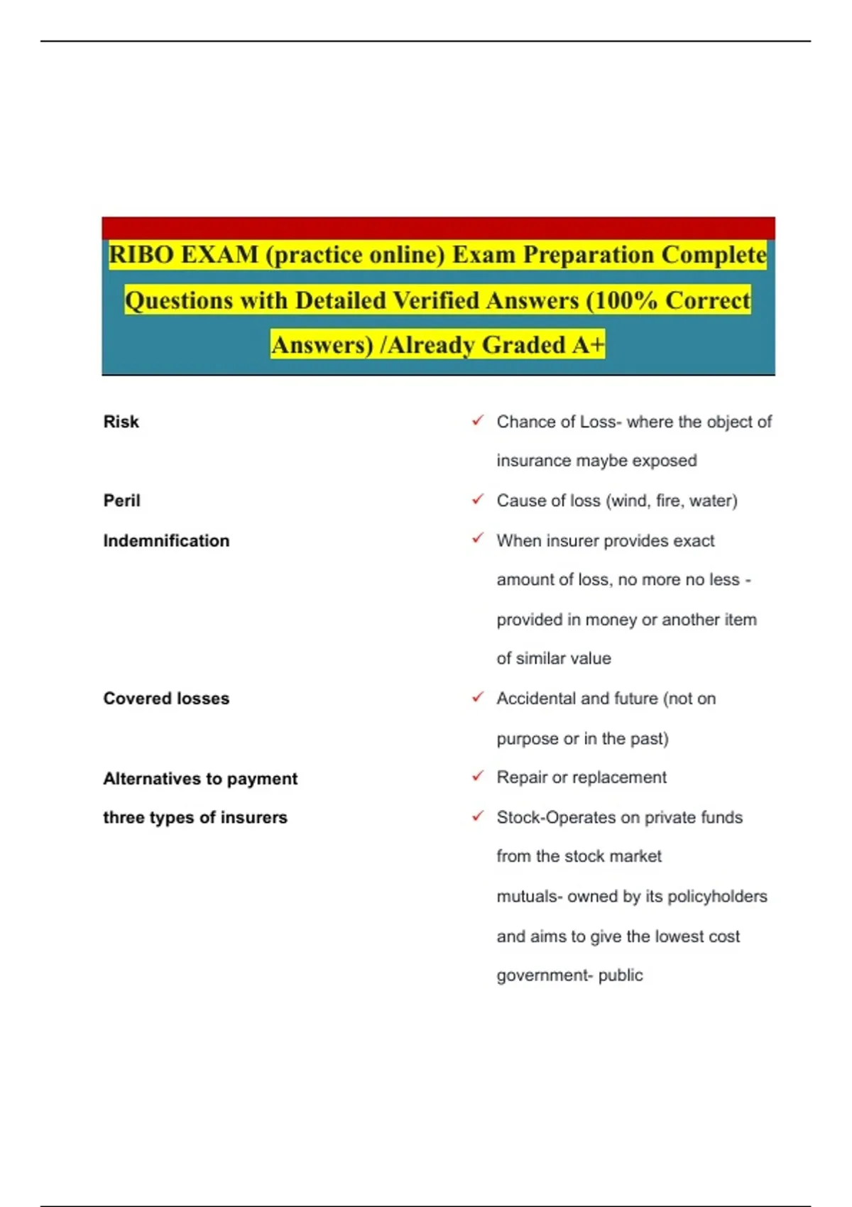 Indemnification ✓ When insurer provides exact