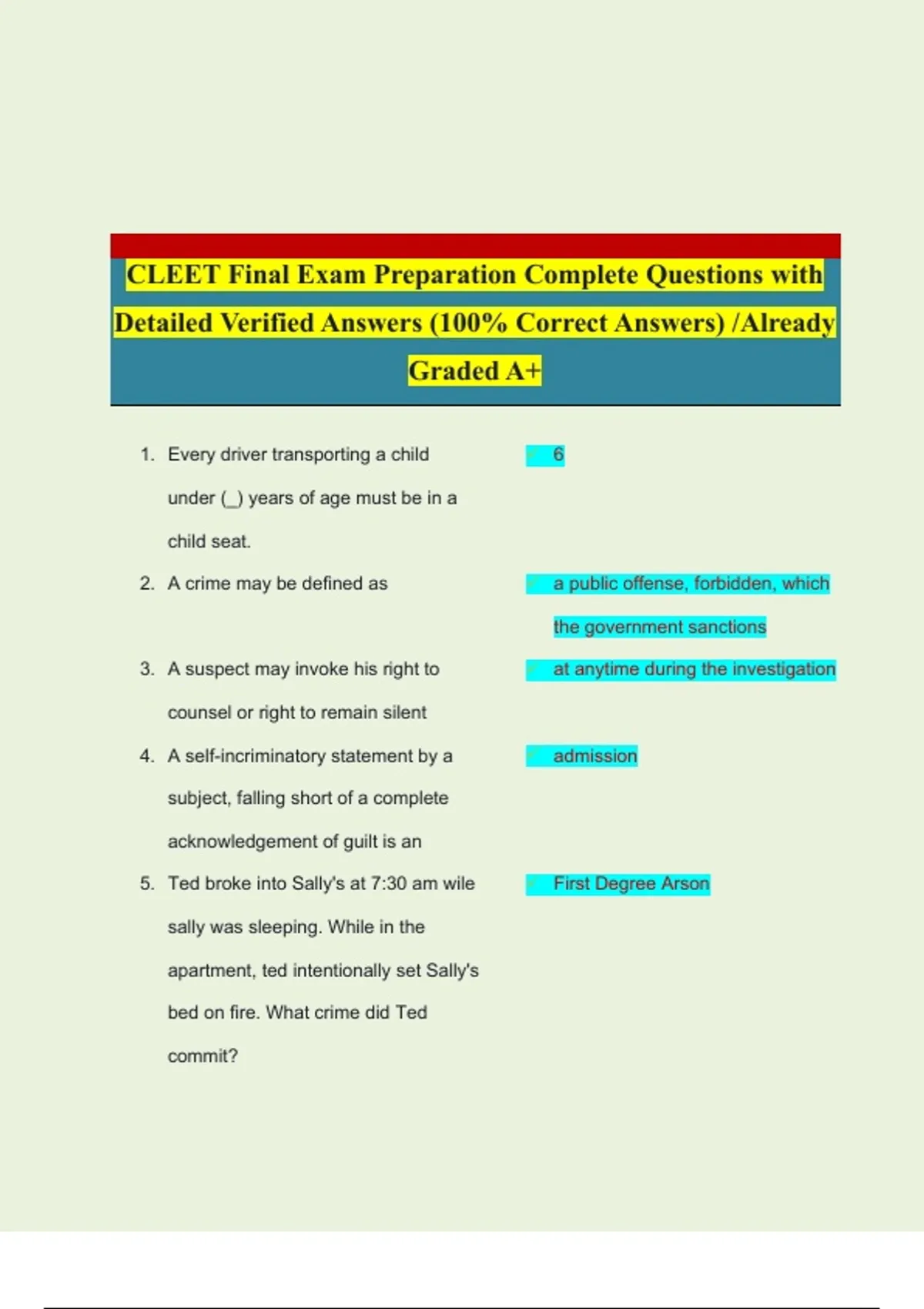 5. Ted broke into Sally's at 7:30 am wile ✓ First Degree Arson