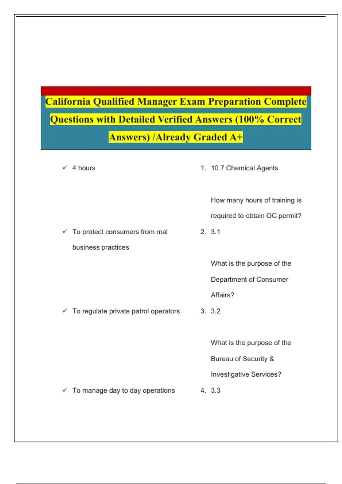 ✓ The owner of the private security 5. 3.3
