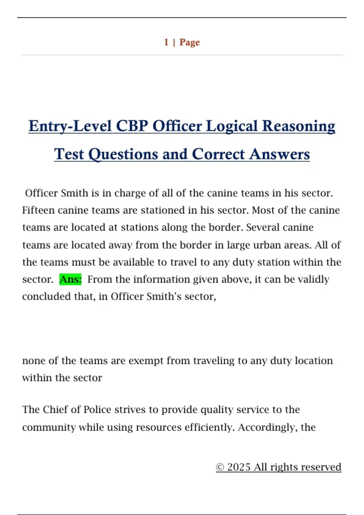 Entry-Level CBP Officer Logical Reasoning Test Questions and Correct Answers