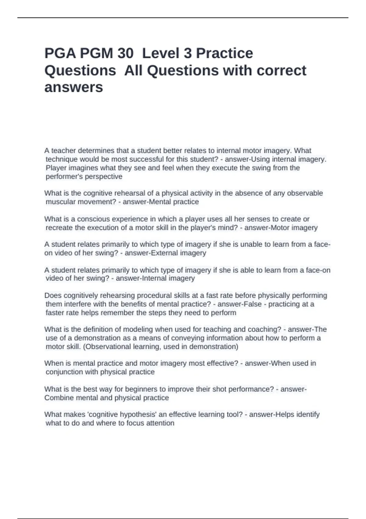 PGA PGM 3.0 Level 3 Practice Questions All Questions with correct answers