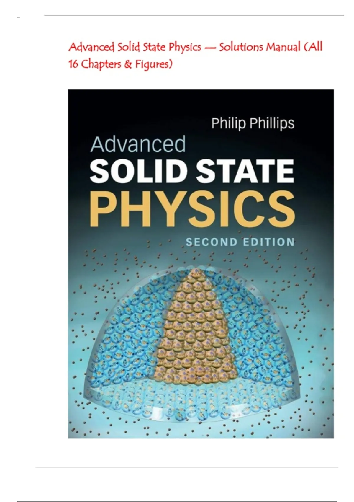 Advanced Solid State Physics — Solutions Manual (All 16 Chapters & Figures) | latest edition| Ace your exam.