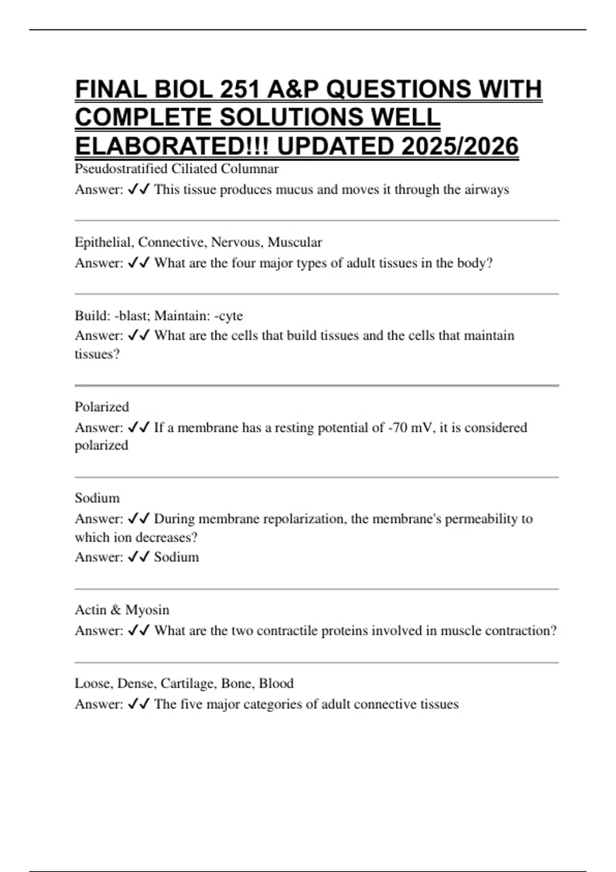FINAL BIOL 251 A&P QUESTIONS WITH
