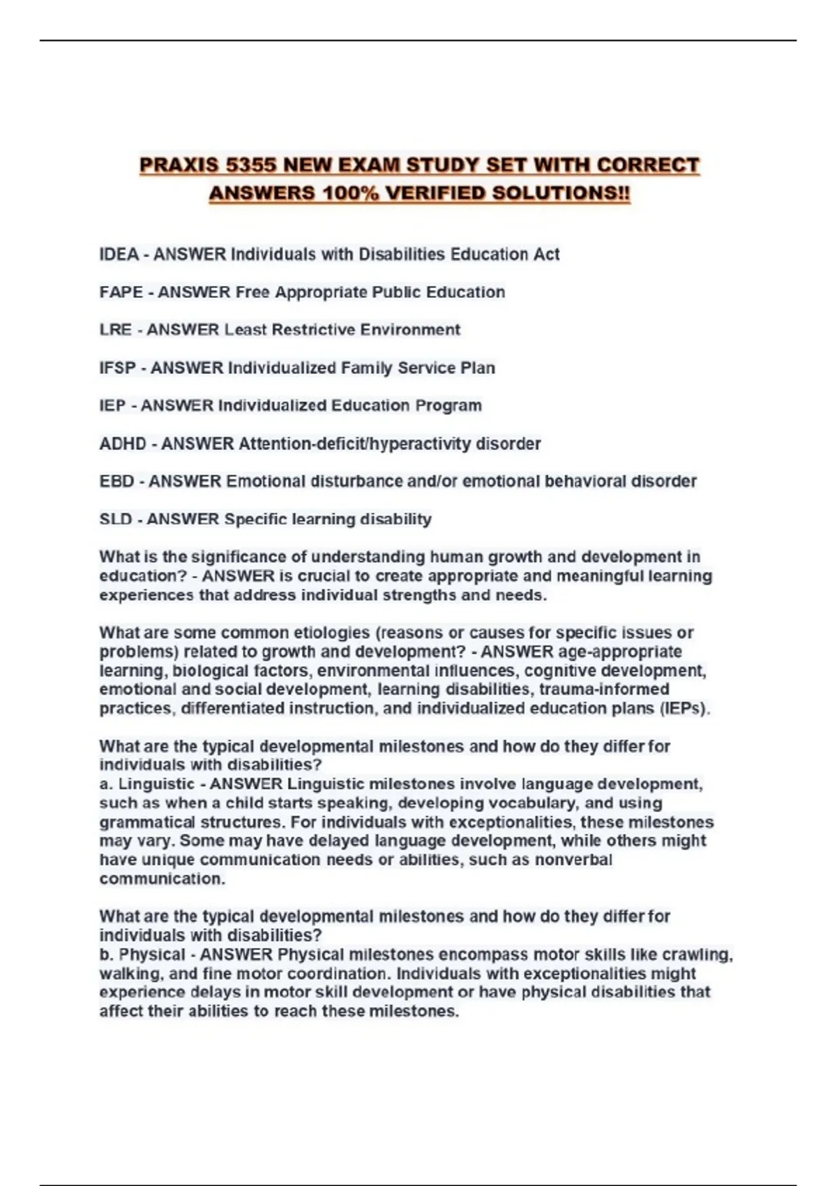 PRAXIS 5355 NEW EXAM STUDY SET WITH CORRECT ANSWERS 100% VERIFIED SOLUTIONS!!...