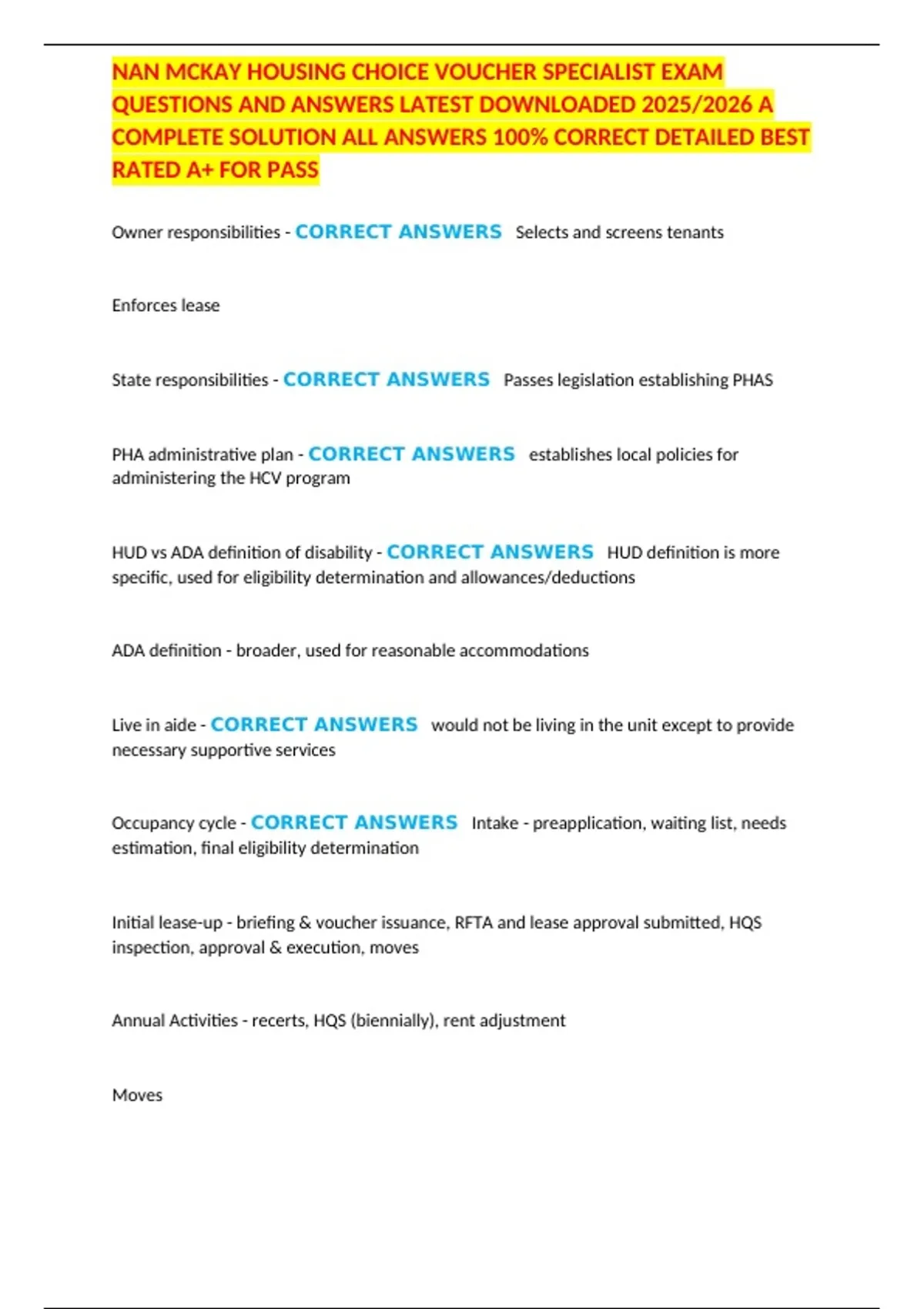 , NAN MCKAY HOUSING CHOICE VOUCHER SPECIALIST EXAM