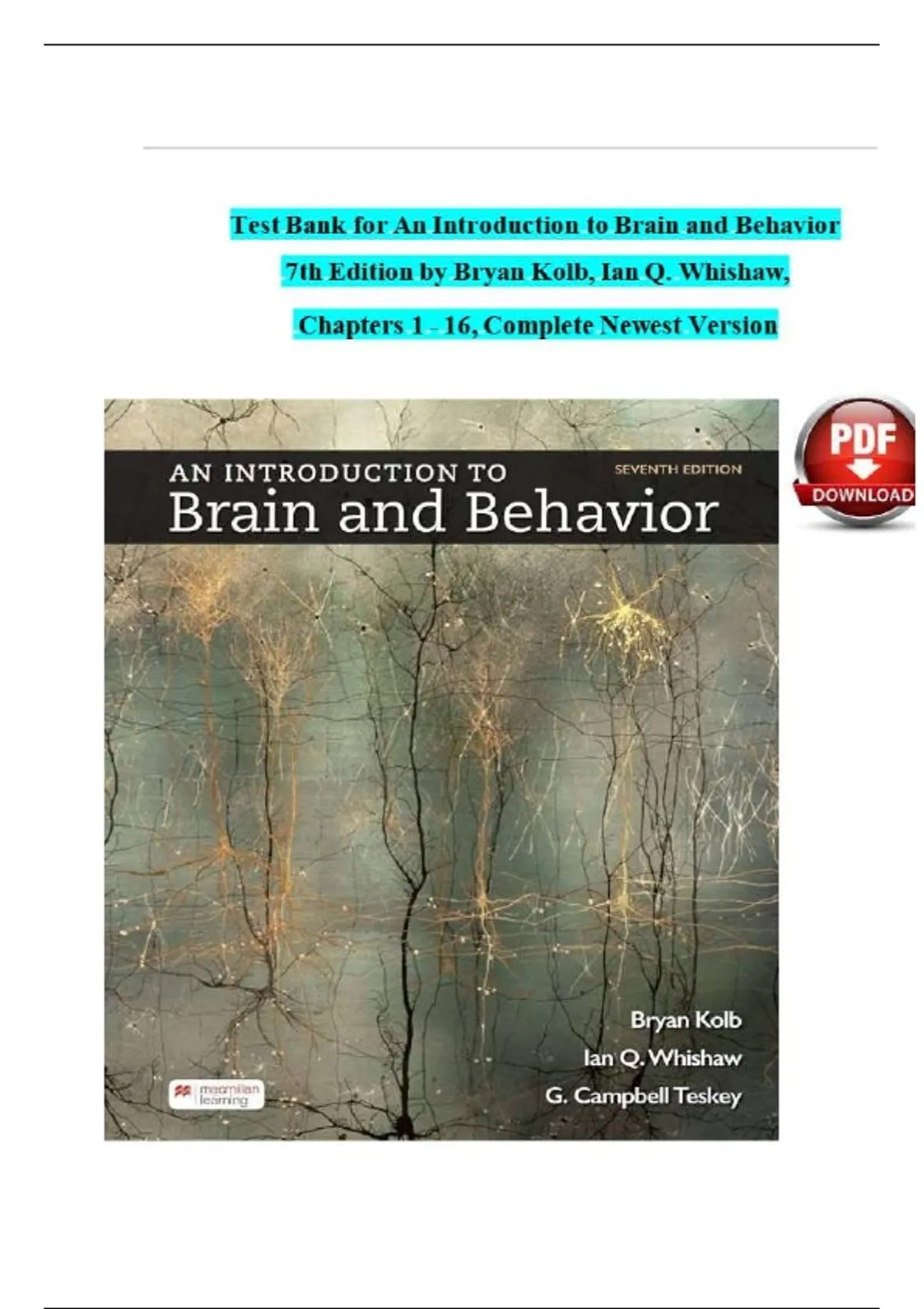 , Test Bank for An Introduction to Brain and Behavior 7th Bryan Kolb , Ian Q. Whishaw ,