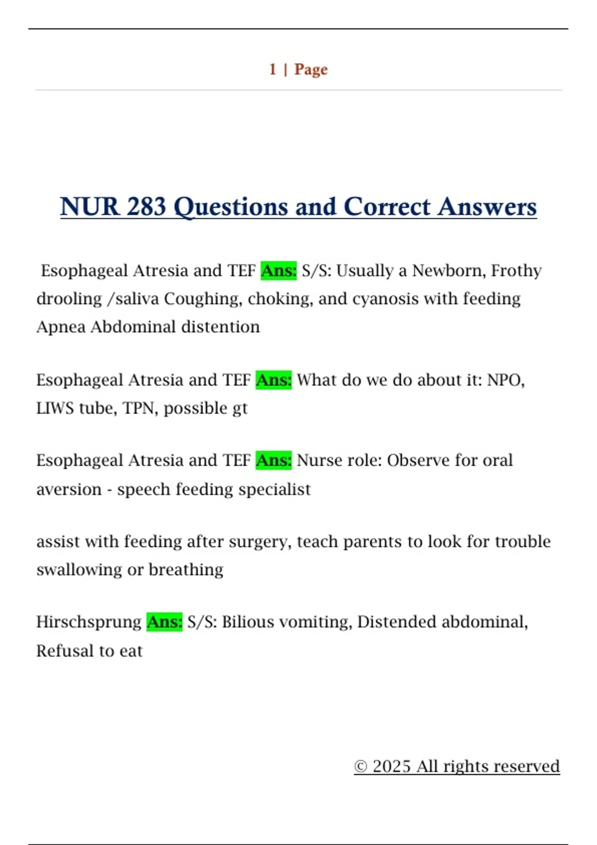 NUR 283 Questions and Correct Answers