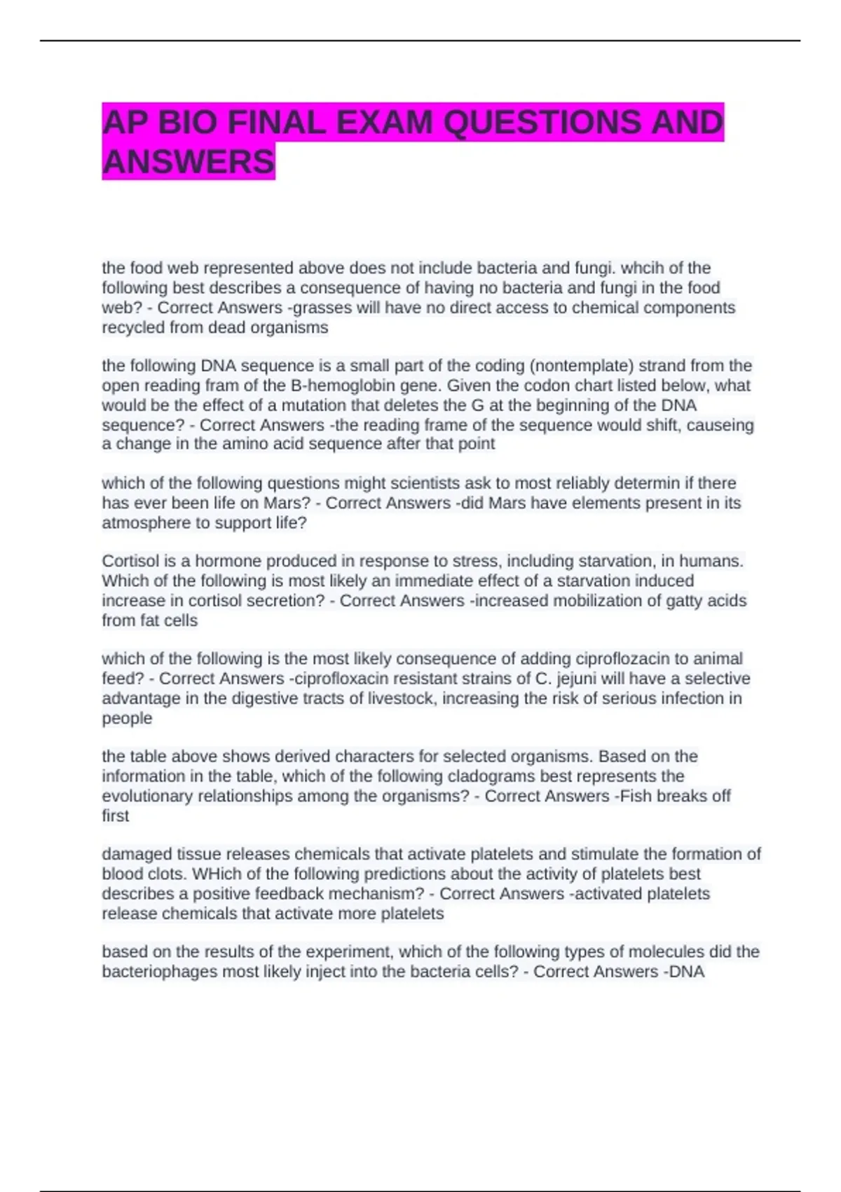 AP BIO FINAL EXAM QUESTIONS AND