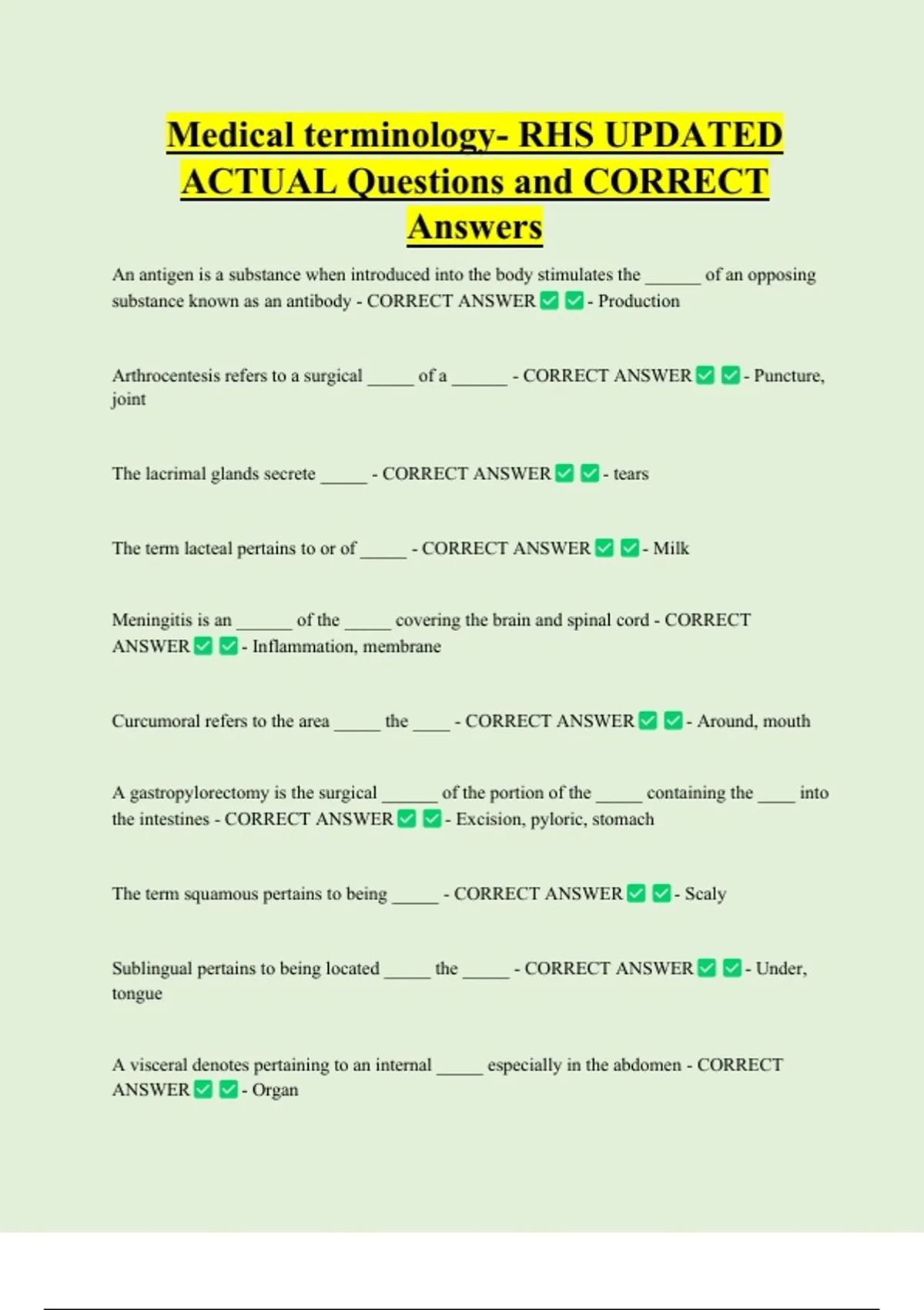 ACTUAL Questions and CORRECT