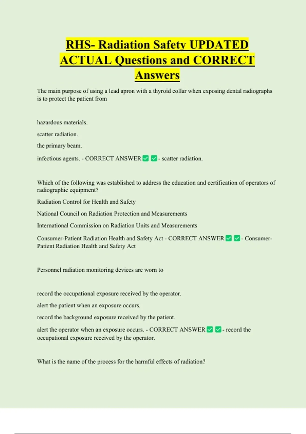 Consumer-Patient Radiation Health and Safety Act - CORRECT ANSWER - Consumer-