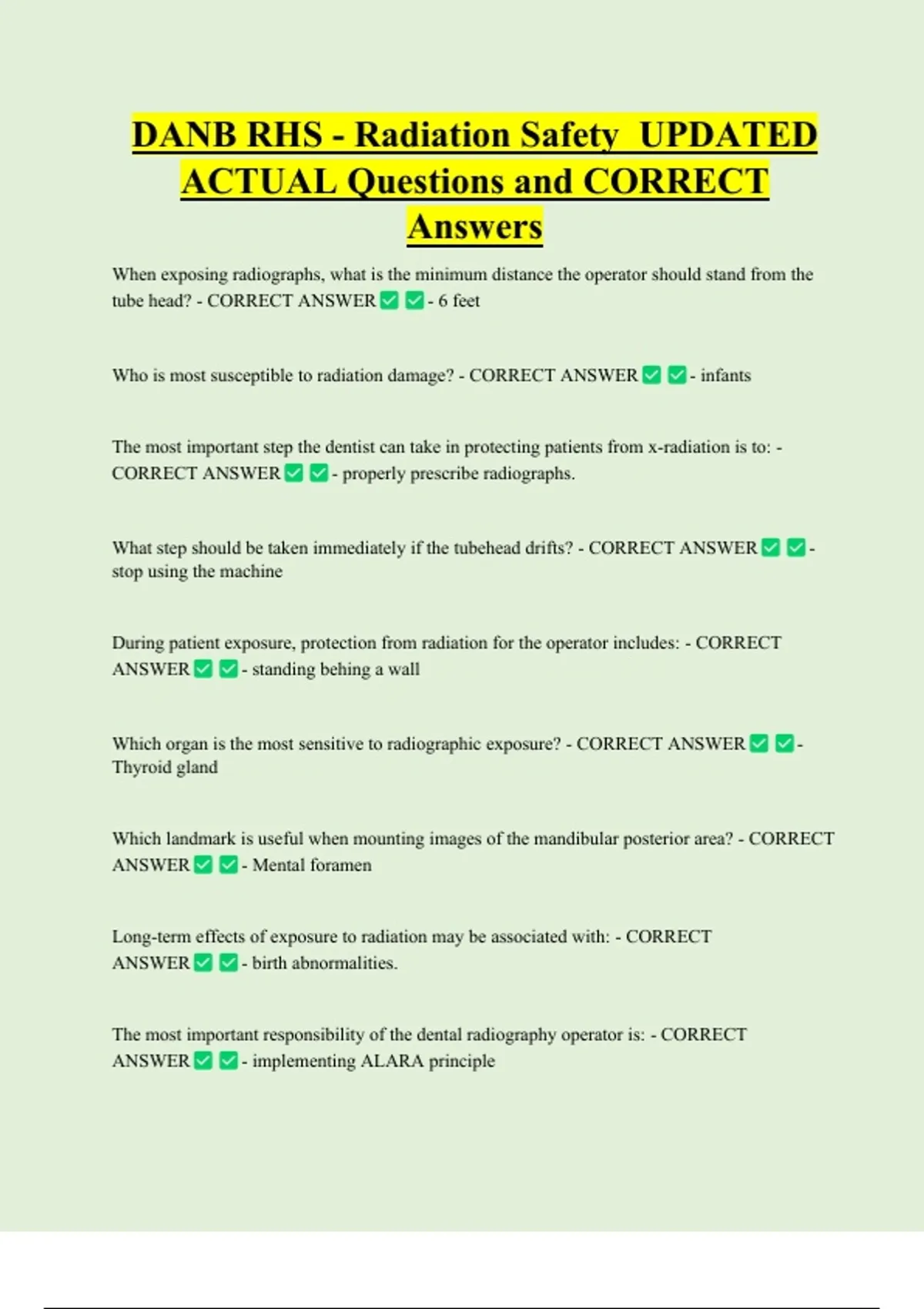 DANB RHS - Radiation Safety UPDATED ACTUAL Questions and CORRECT Answers