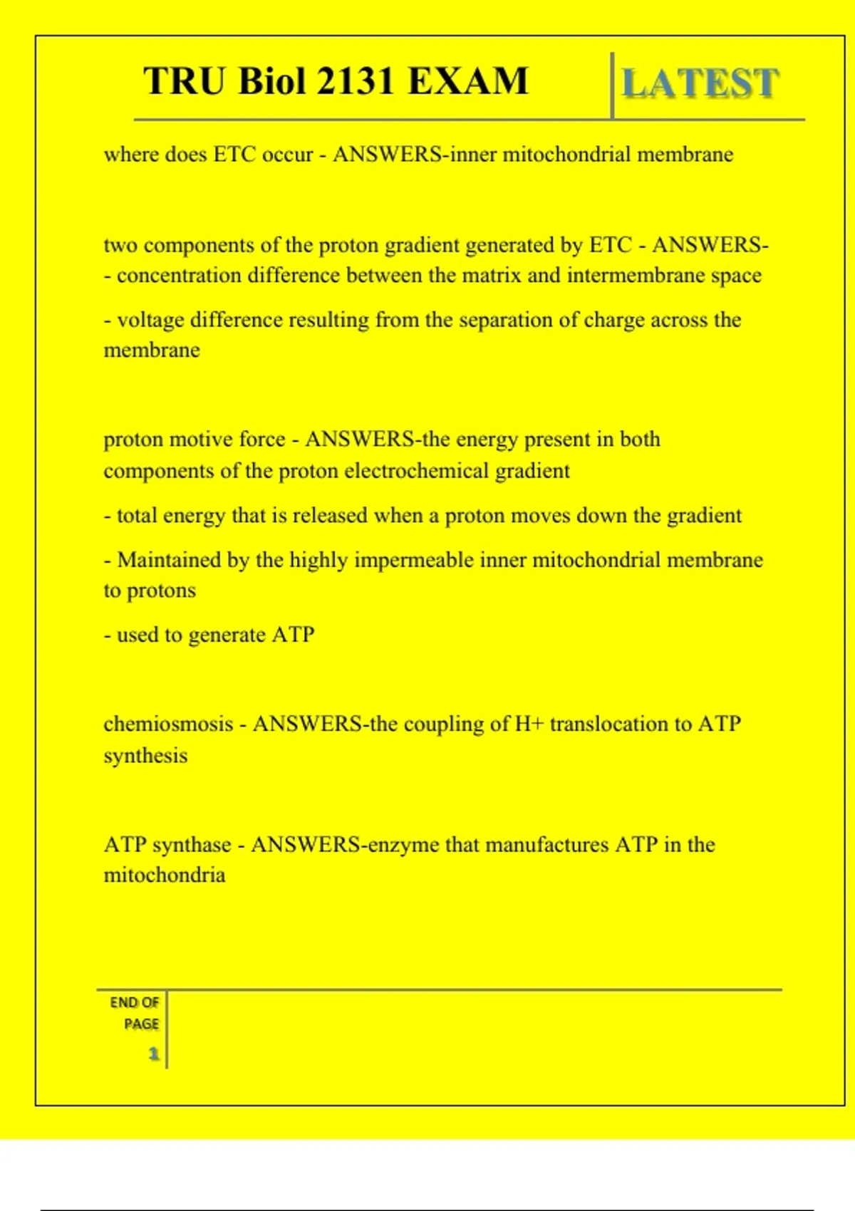 TRU Biol 2131 EXAM QUESTIONS AND ANSWERS 2025