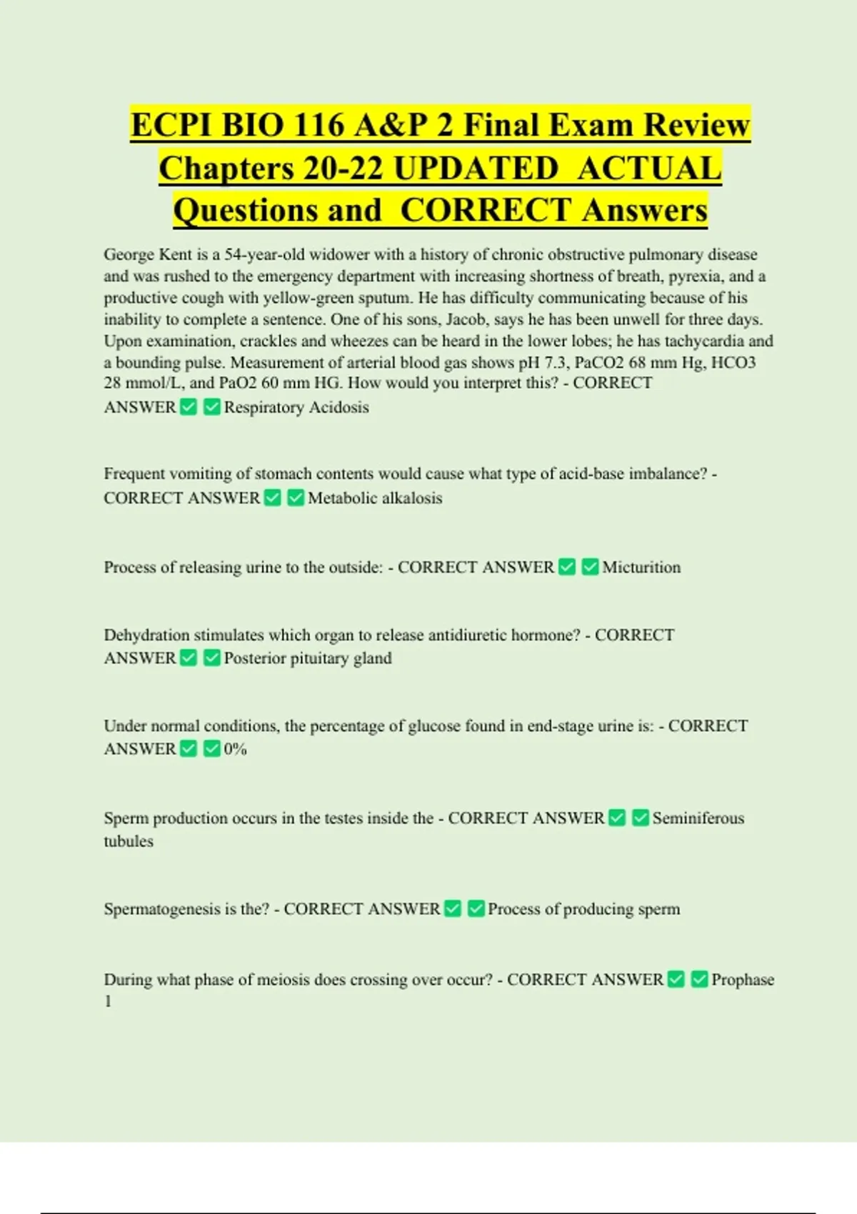 ECPI BIO 116 A&P 2 Final Exam Review Chapters 20-22 UPDATED ACTUAL Questions and CORRECT Answers