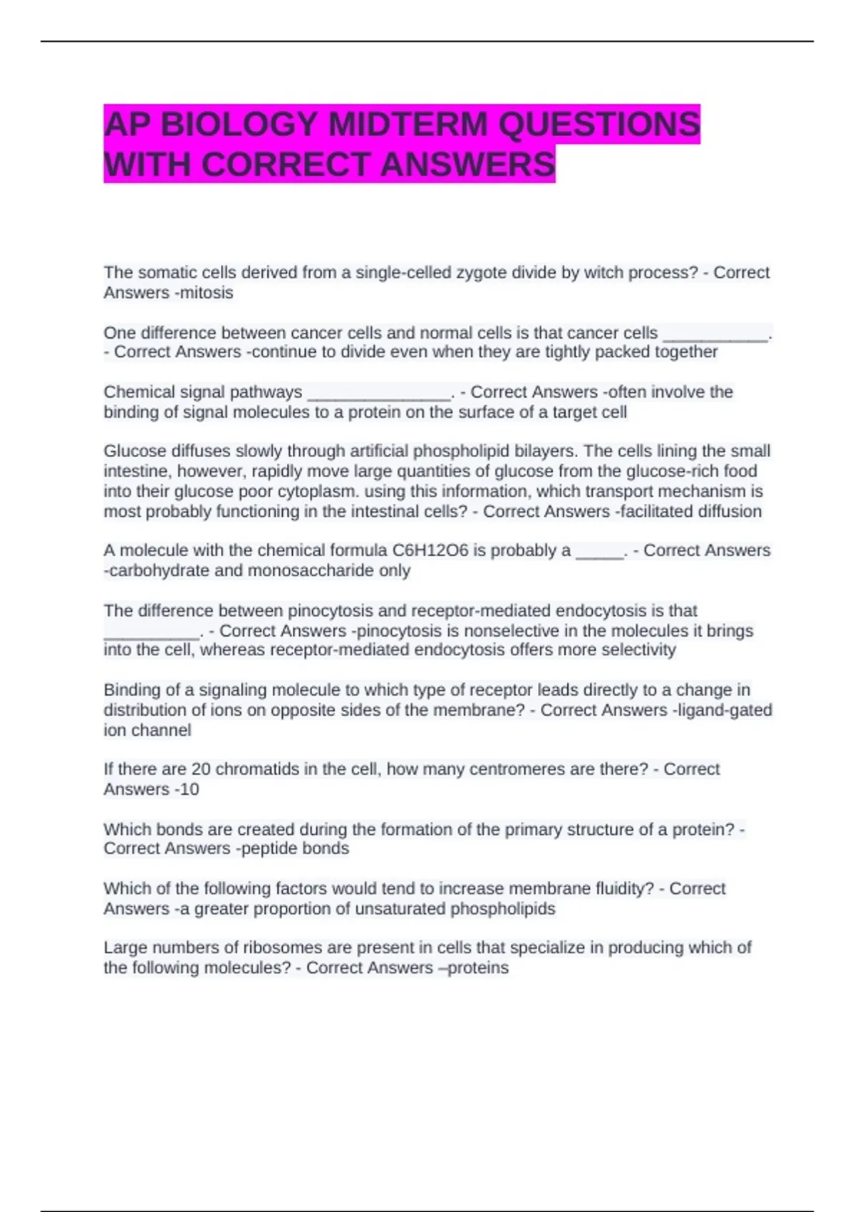 __________. - Correct Answers -pinocytosis is nonselective in the molecules it brings