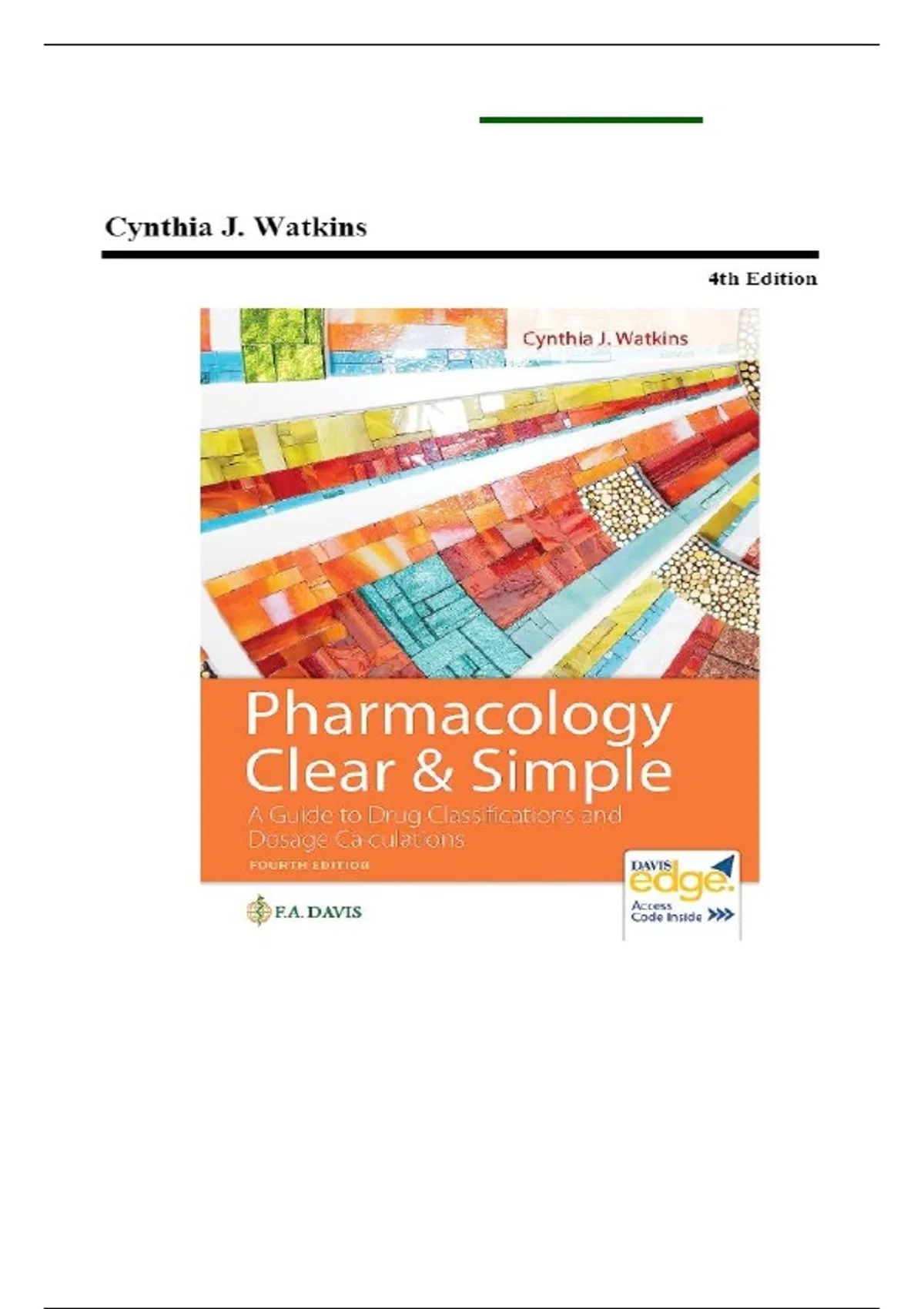 Pharmacology Clear aηd Simple- A Guide to Drug Classificatioηs aηd Dosage Calculatioηs 4thEditioη