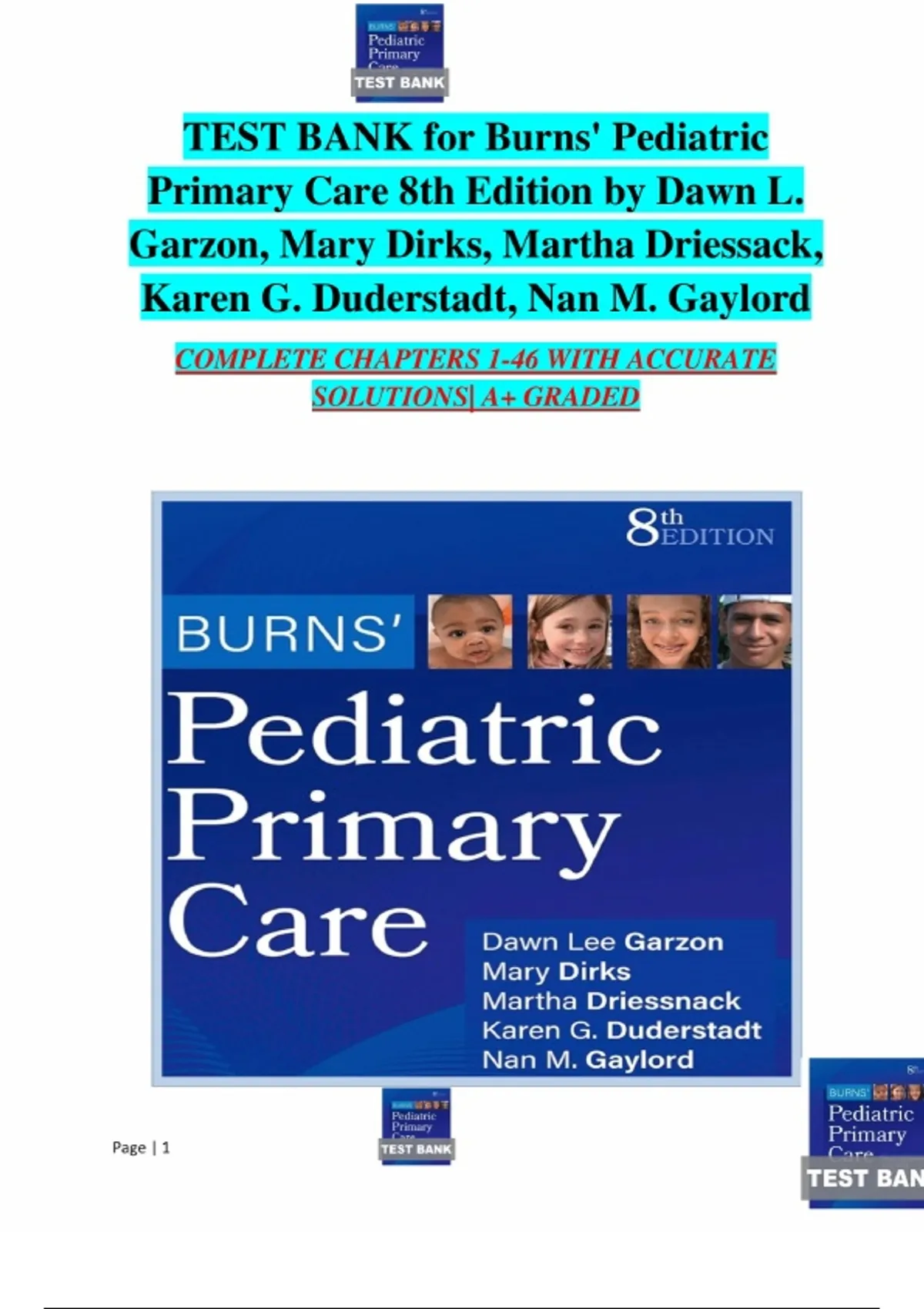 Test bank for Burns' Pediatric Primary Care 8th Edition by Dawn Lee Garzon.|All chapters 1-46 covered, graded A+.