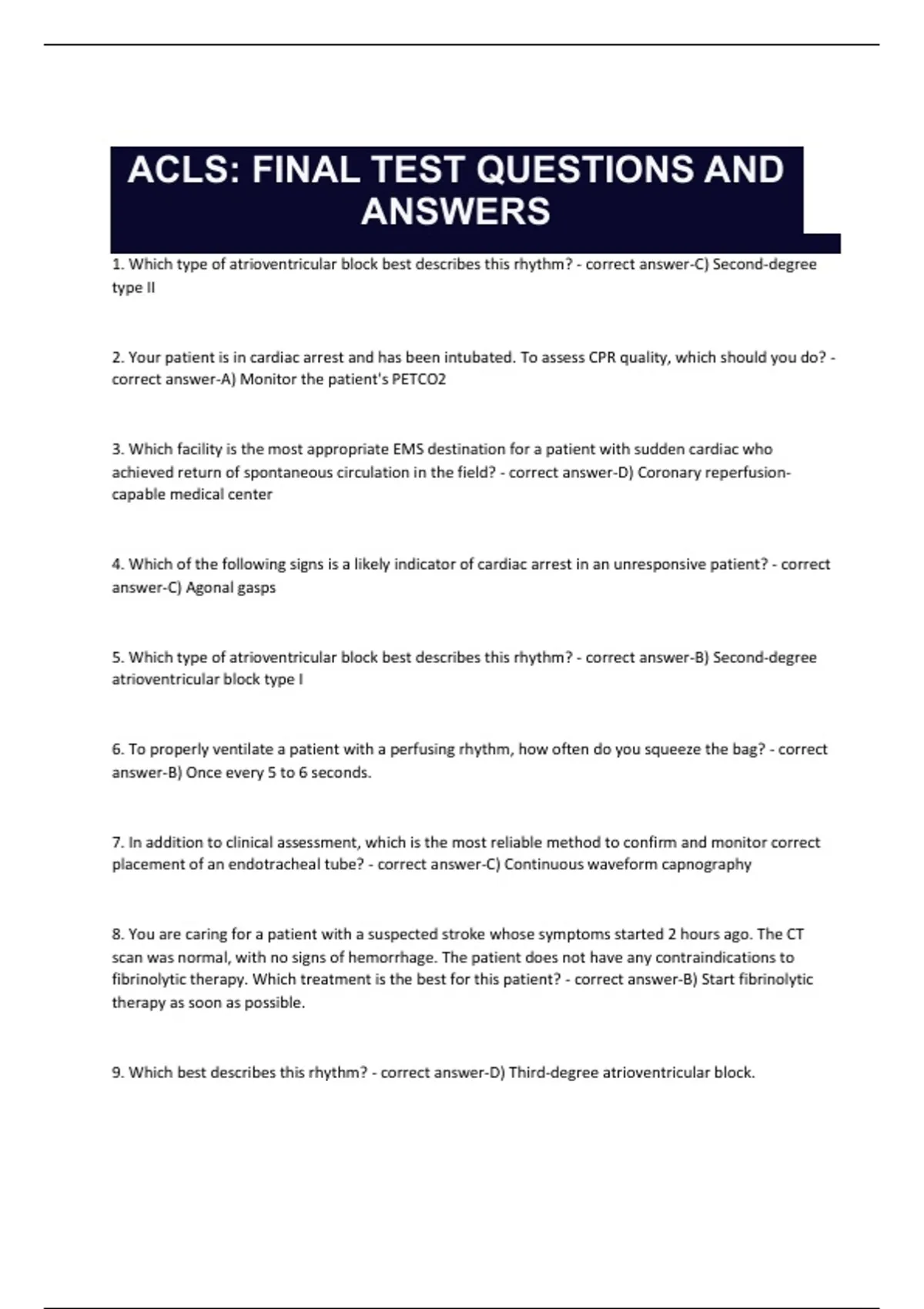 ACLS FINAL TEST QUESTIONS AND ANSWERS