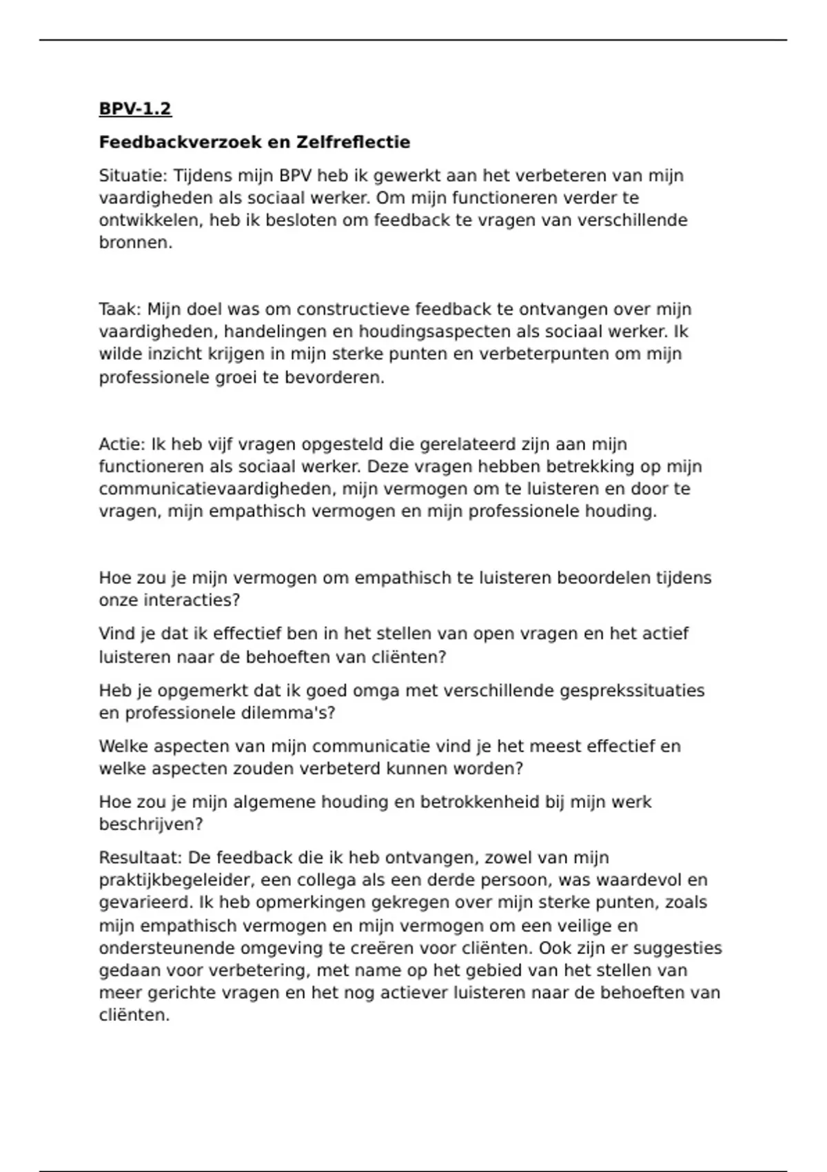 Situatie: Tijdens mijn BPV heb ik gewerkt aan het verbeteren van mijn