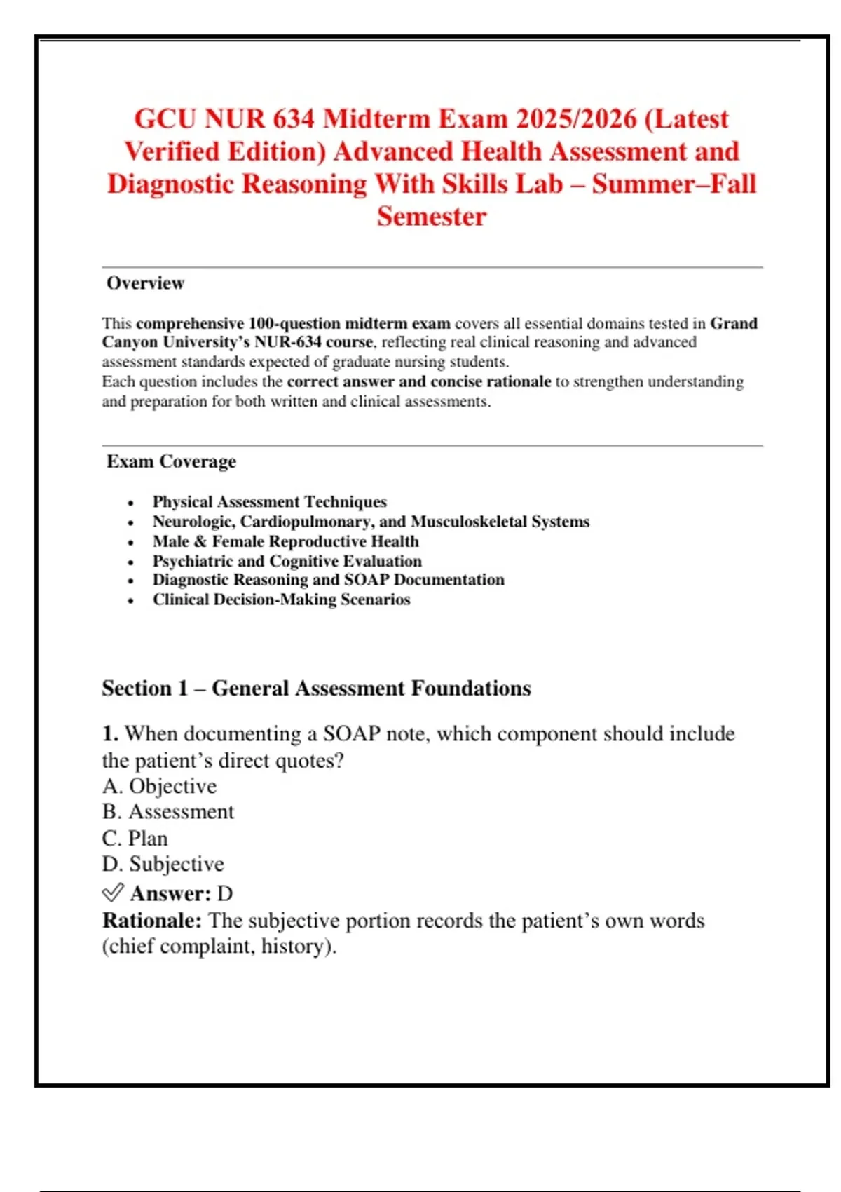 This comprehensive 100-question midterm exam covers all essential domains tested in Grand